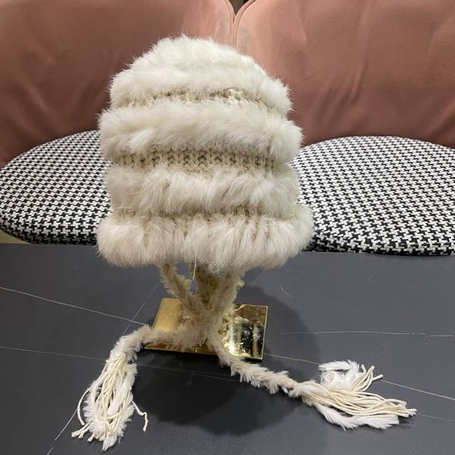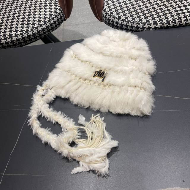 Dior plush lion hat for women, autumn and winter rabbit fur knitted fisherman hat, makes face look smaller, 2025 new style, warm earmuff head hat.