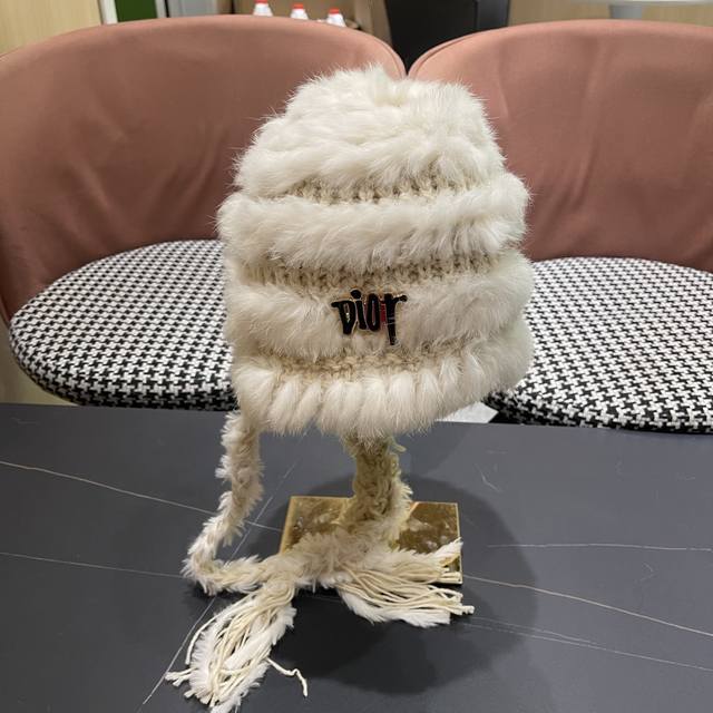 / Dior plush lion hat for women, autumn and winter rabbit fur knitted fisherman ha