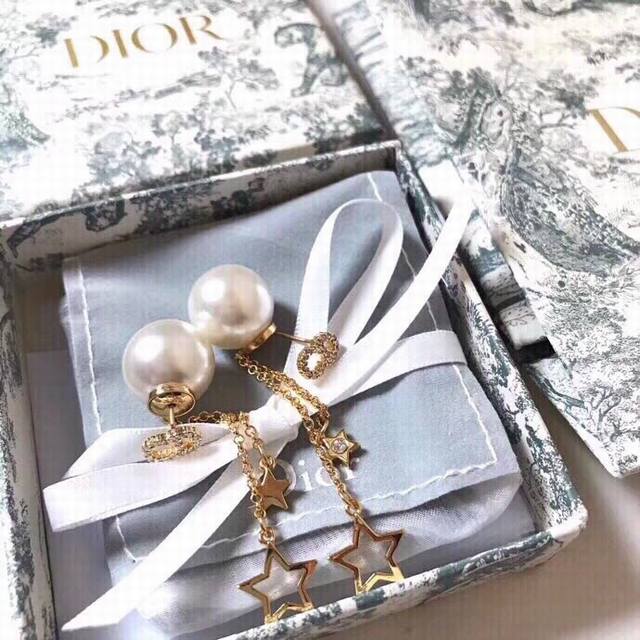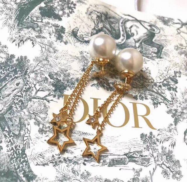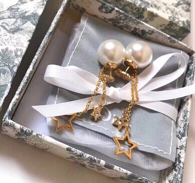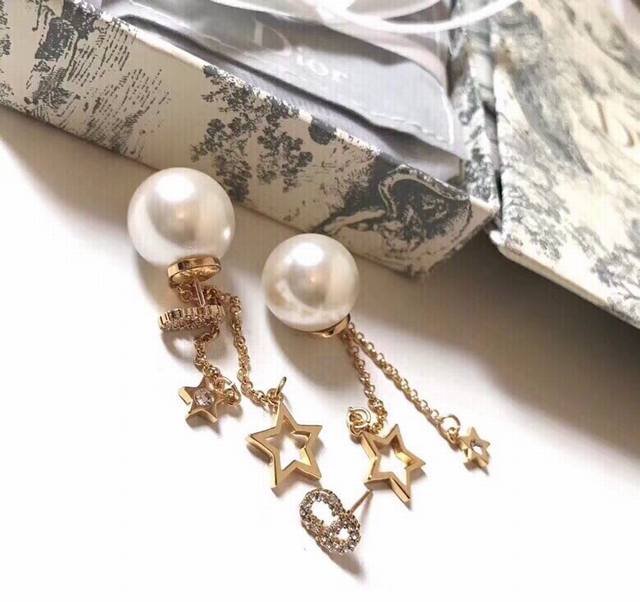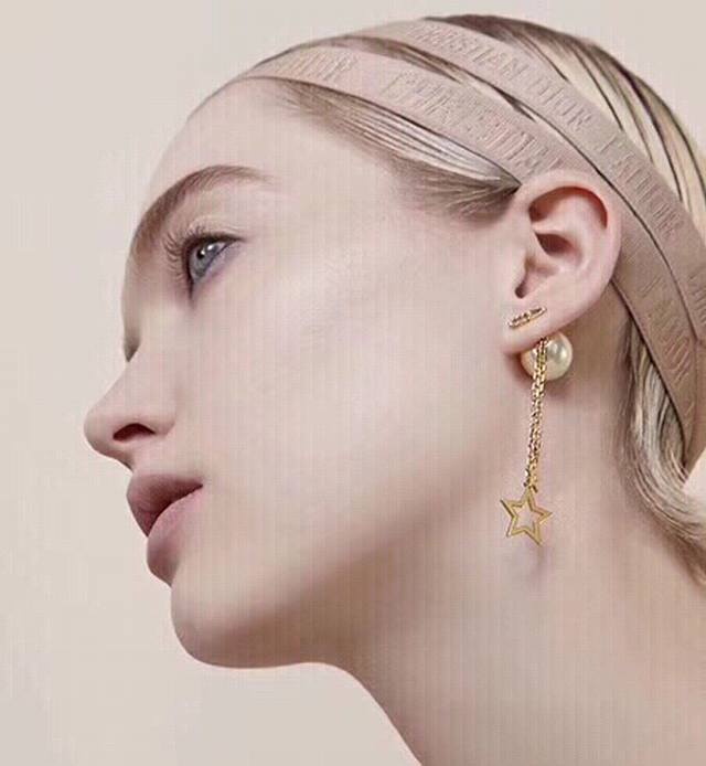 Dior Reversible Pearl Five-Pointed Star Tassel Earrings reinterpret the brand logo in a playful way. Tassels adorn the edges of the pearls, and gold beads weave a geometric aesthetic between the ears, exuding elegance and a touch of fashionable sophistication...