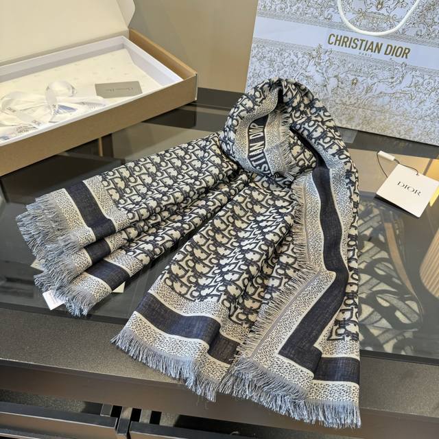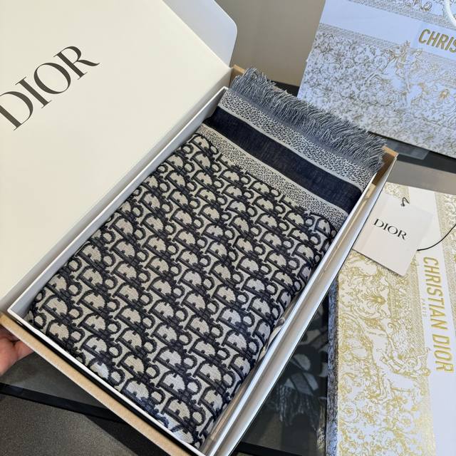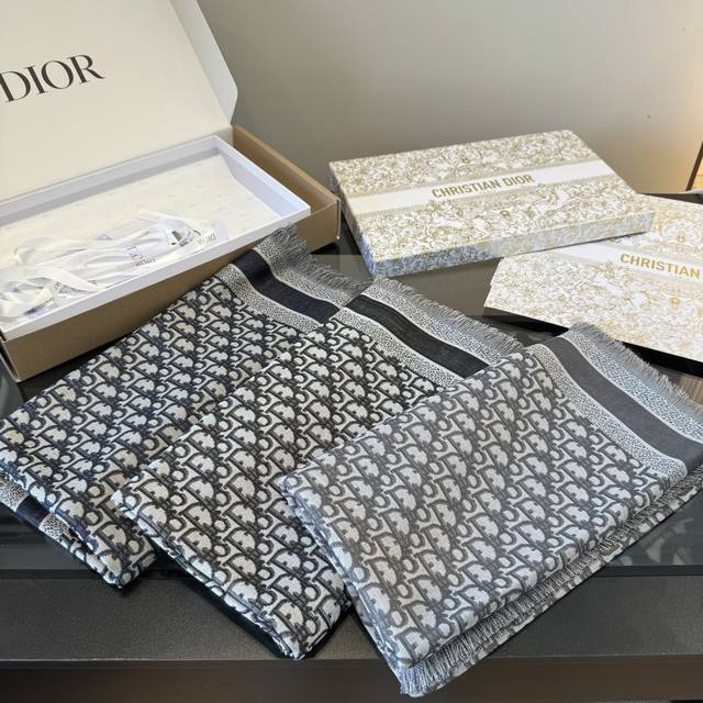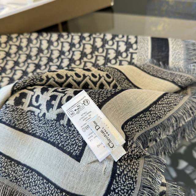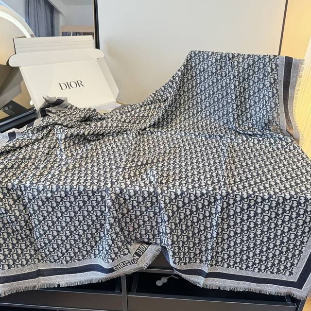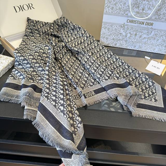 Dior scarf, high-level! Yes, woman! A classic old pattern reinterpreted!! The actual product is stunning!! This autumn/winter's new Cge jacquard shawl is meticulously crafted from a lightweight blend of wool, silk, and cashmere, reinterpreting the iconic cannage pattern. It features tassels and is embellished with contrasting "Cistian" logo jacquard stripes. The irreplaceable elegance of "denim blue" and "sophisticated gray" is undeniable! The quality is excellent! The fabric texture makes the pattern clear and neat. You 'll regret not getting this ! Just casually wrap it around your neck, and you'll definitely turn heads!!! A sophisticated and elegant accessory! An ideal accessory for all seasons, suitable for all styles!!! Size: 140cm*140cm, 42% silk + 42% wool + 16% cotton