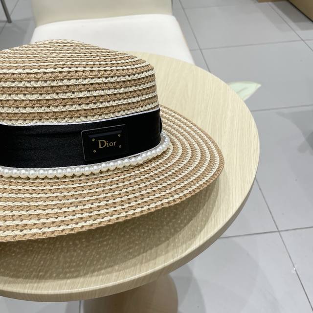 / Dior straw hat, openwork top hat, official style, not the common market version,