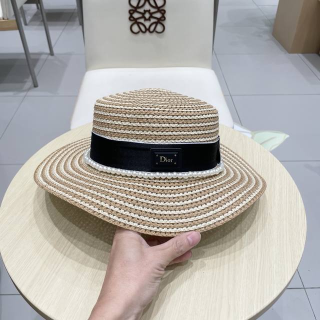 Dior straw hat, openwork top hat, official style, not the common market version, head circumference 57cm.