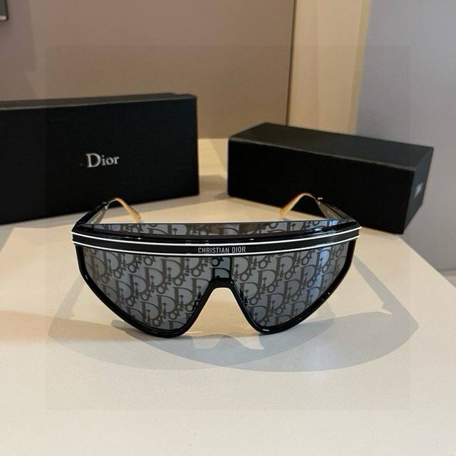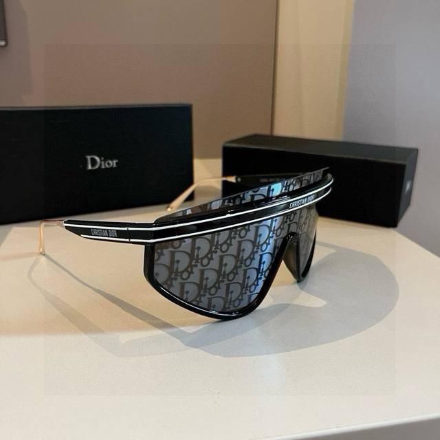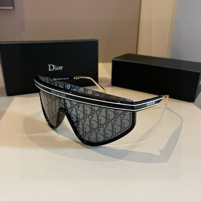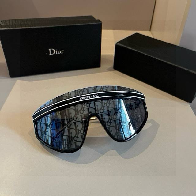 . This Diorclub M2U sunglasses features an irregular eye mask frame, highlighting the charm of a sporty style. The silver mirrored lenses are decorated with a blue Dior Oblique pattern, cleverly matched with the eye-catching side baffles, making it more fashionable and chic. The navy blue matte acetate frame is embellished with line details and a white glossy Christiandior logo to create a sharp contrast effect. Super classic navy blue matte acetate frame with white logo Silver mirrored lenses are decorated with a blue Dior Oblique pattern Temples are decorated with the Christian Dior logo