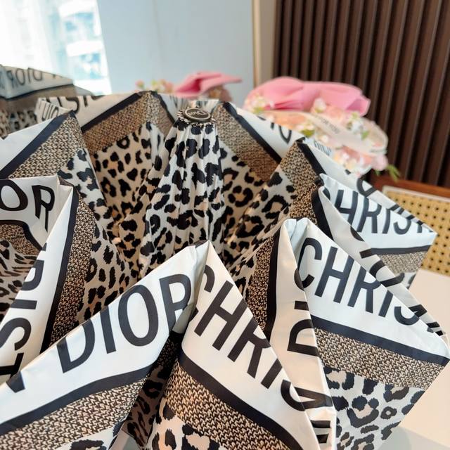 Dior tri-fold automatic folding umbrella, fashionable, original OEM quality, exquisite details, visible quality, breaking the monotony, pure and bright color!
