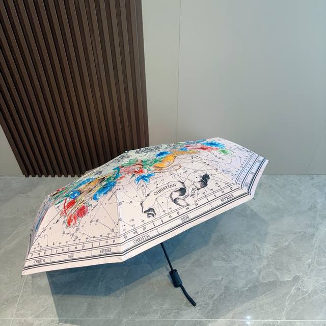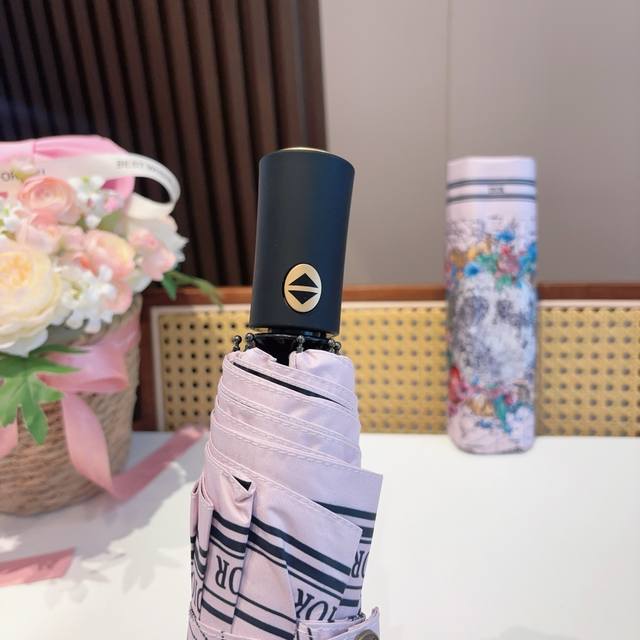 Dior tri-fold automatic folding umbrella, fashionable, original OEM quality, exquisite details, visible quality, breaking the monotony, pure and bright color!