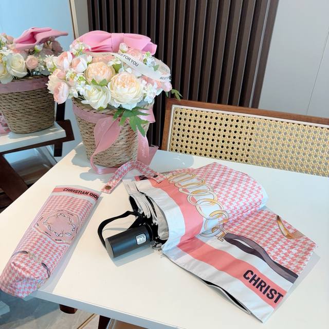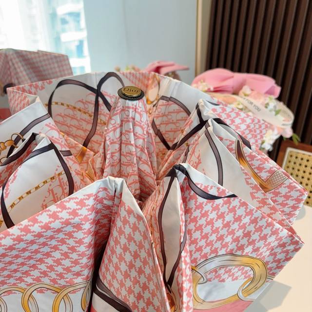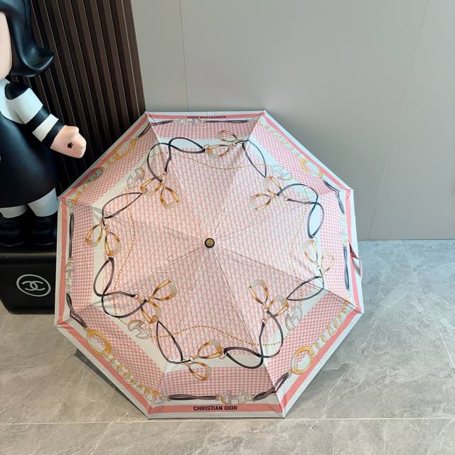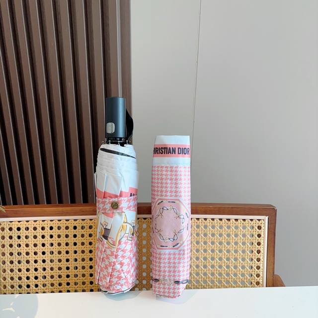 Dior tri-fold automatic folding umbrella, fashionable, original OEM quality, exquisite details, visible quality, breaking the monotony, pure and bright color!