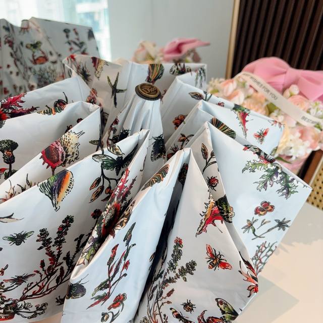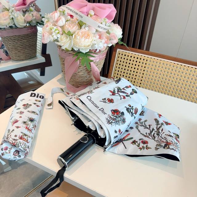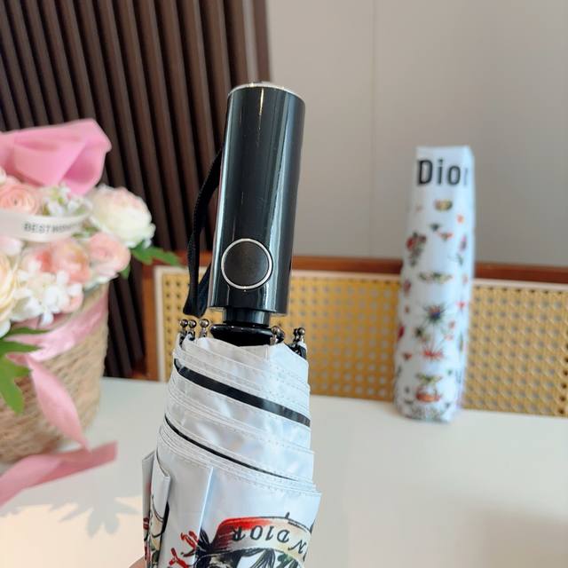 Dior tri-fold automatic folding umbrella, fashionable, original OEM quality, exquisite details, visible quality, breaking the monotony, pure and bright color!