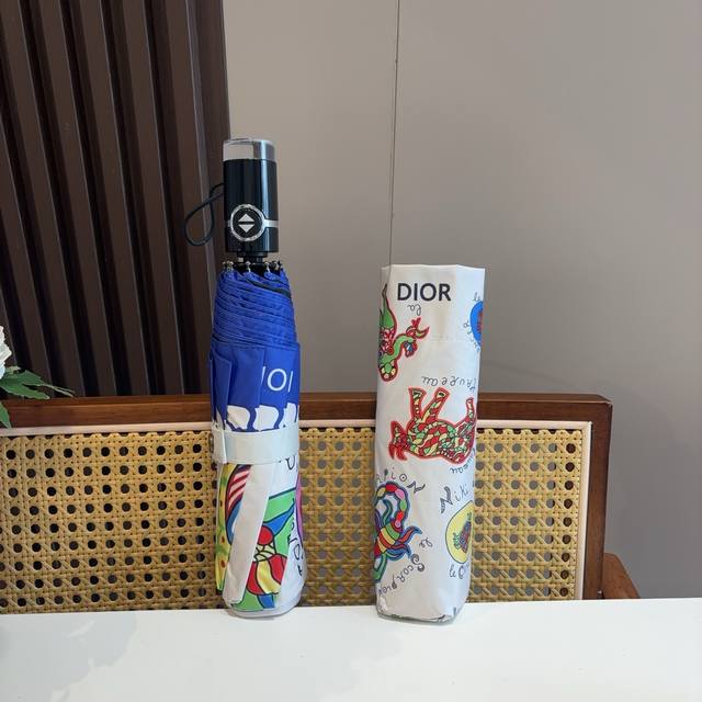 Dior tri-fold automatic folding umbrella, fashionable, original OEM quality, exquisite details, visible quality, breaking the monotony, pure and bright color!