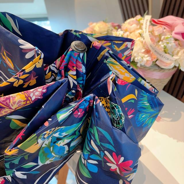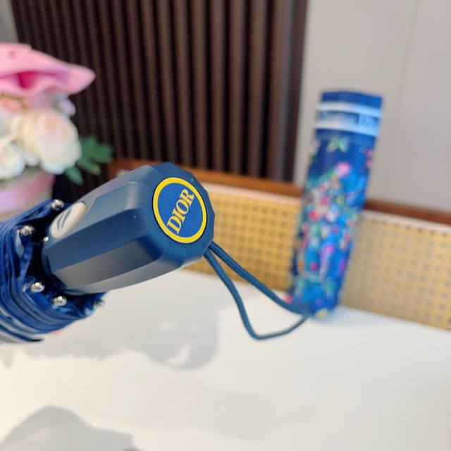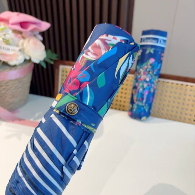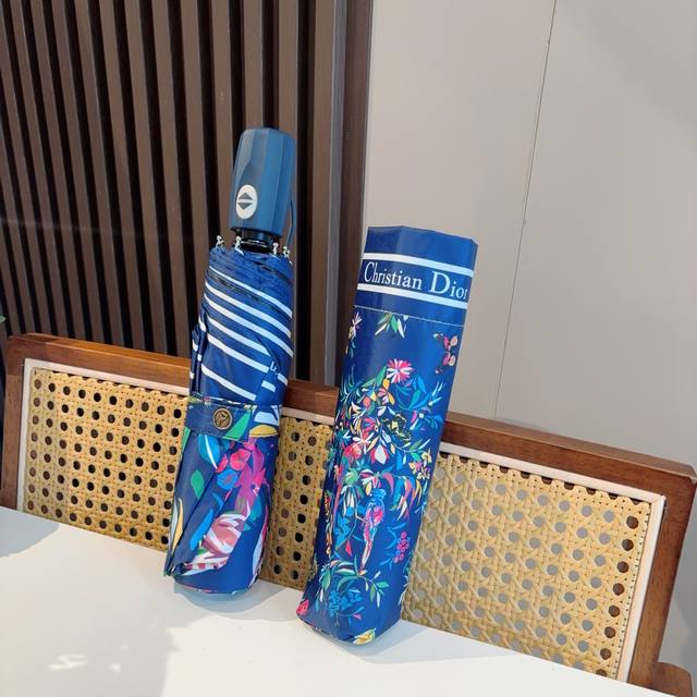 Dior tri-fold automatic folding umbrella, fashionable, original OEM quality, exquisite details, visible quality, breaking the monotony, pure and bright color!