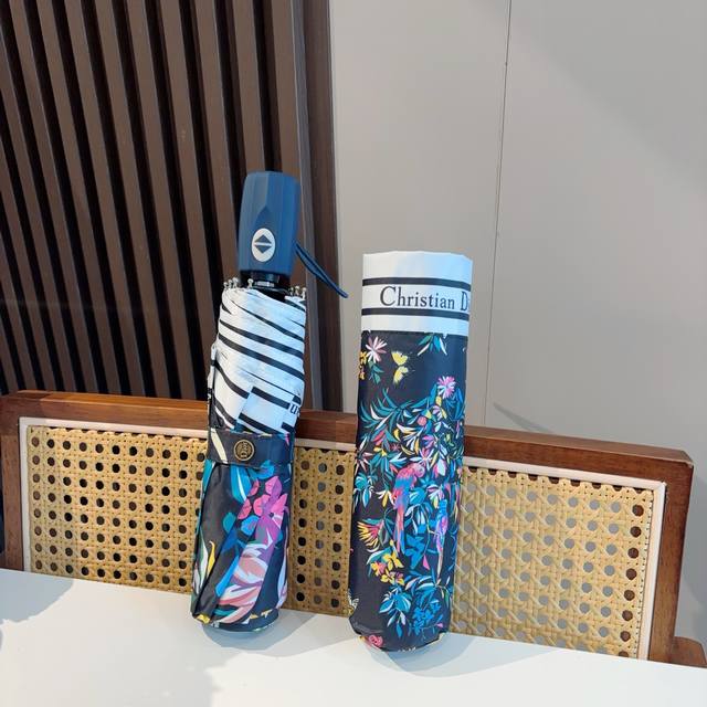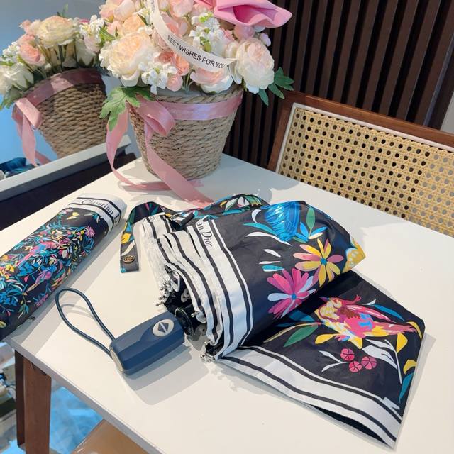 Dior tri-fold automatic folding umbrella, fashionable, original OEM quality, exquisite details, visible quality, breaking the monotony, pure and bright color!