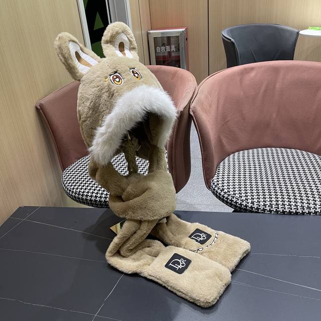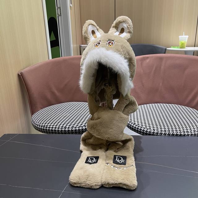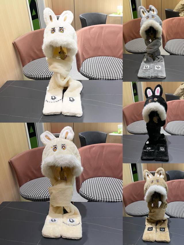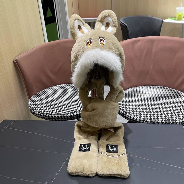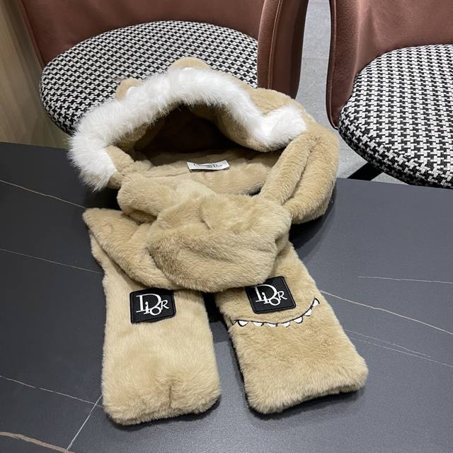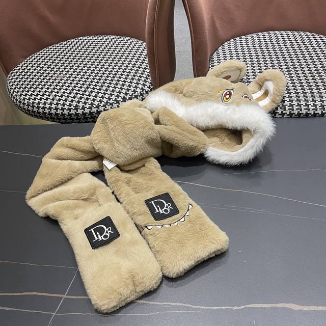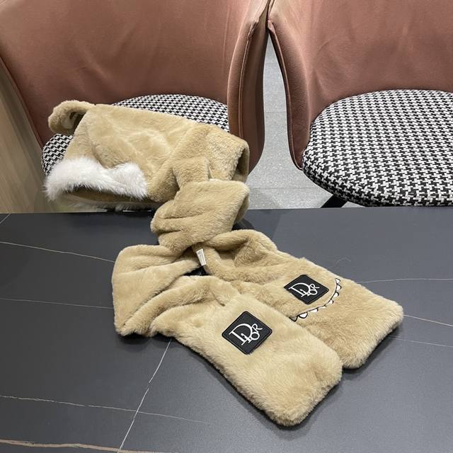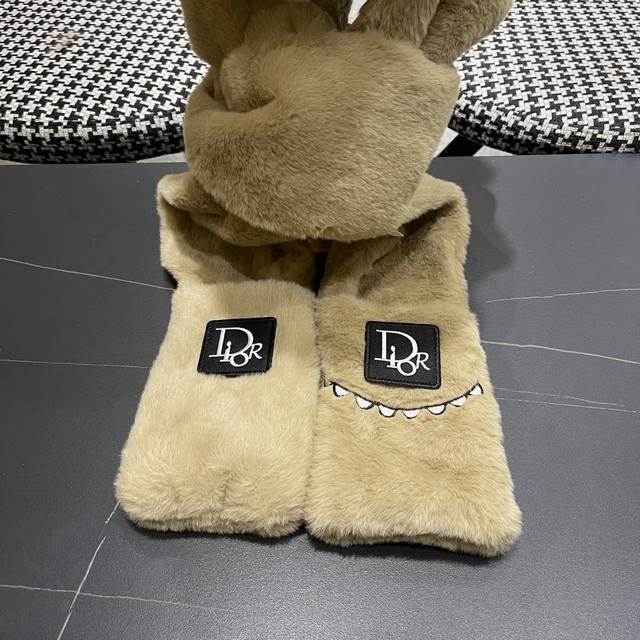/ Dior Winter Plush Thick Hat, Scarf, and Gloves Three-Piece Set for Warmth and Te