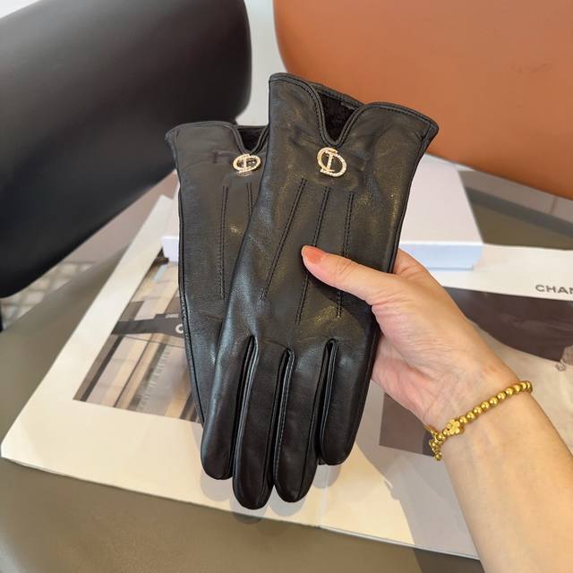 Dior Women's New Lambskin Gloves, stylish gloves, warm and fleece-lined for autumn and winter, classic and simple design, super comfortable and soft to wear, versatile! Ml