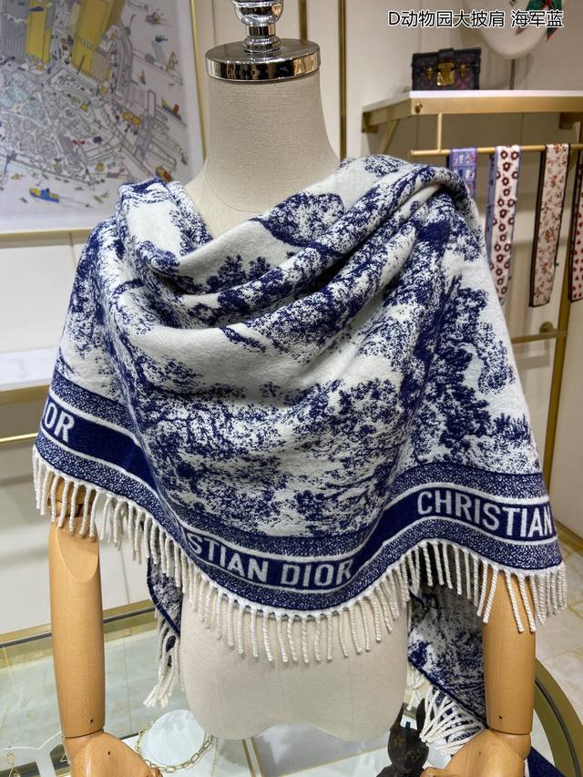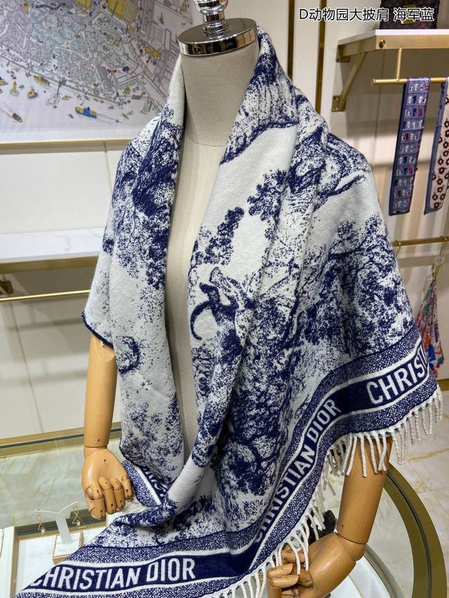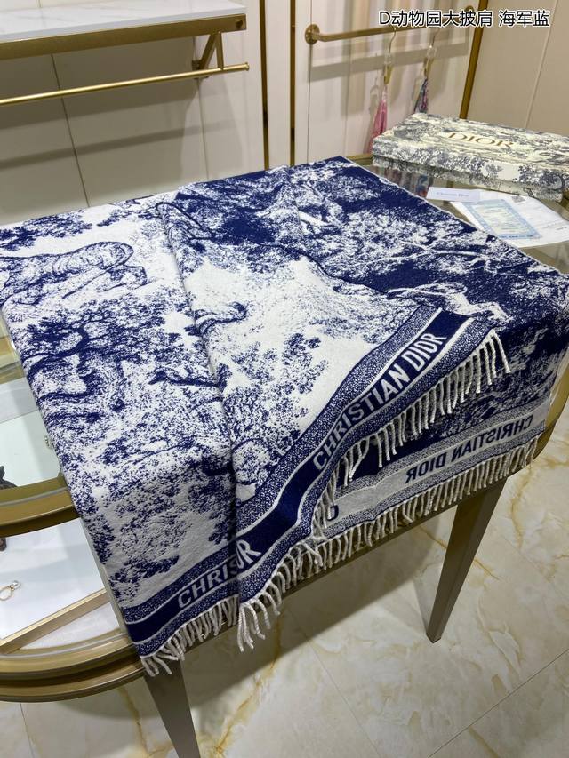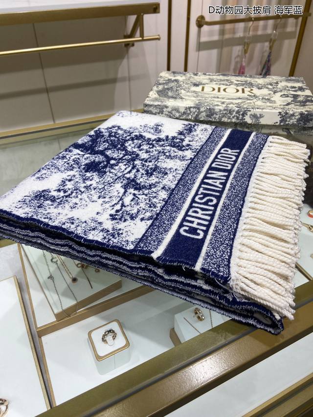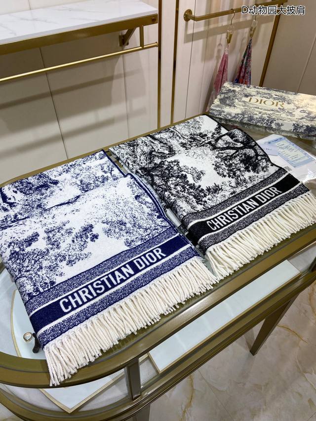 Dior's latest hot-selling shawl, the "Zoo" style oversized shawl, trust me, it's truly a warm, cozy sheep! The quality is unbeatable; you can strongly feel its exceptional quality just by looking at the pictures. The printed pattern is very clear. It can be worn as a wrap, draped, or tied, and it's soft, warm, and thick enough to keep you cozy. Every woman will love it! The classic jungle pattern is very distinctive. In person, it truly feels like a warm, cozy sheep, giving you a sense of security. Crucially, it's also incredibly stylish. A very rare and exceptional piece, 140*140cm, 57% cashmere + 43% wool. It looks good no matter how you wear it. You'll definitely feel it's worth the price!