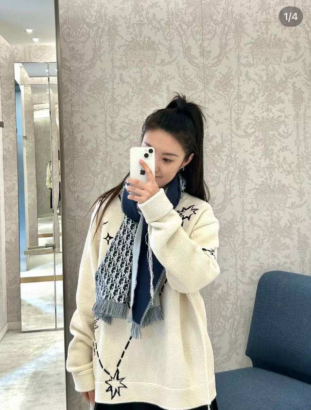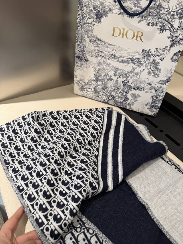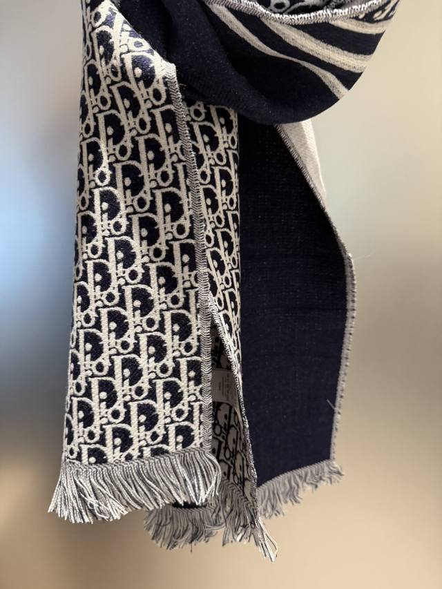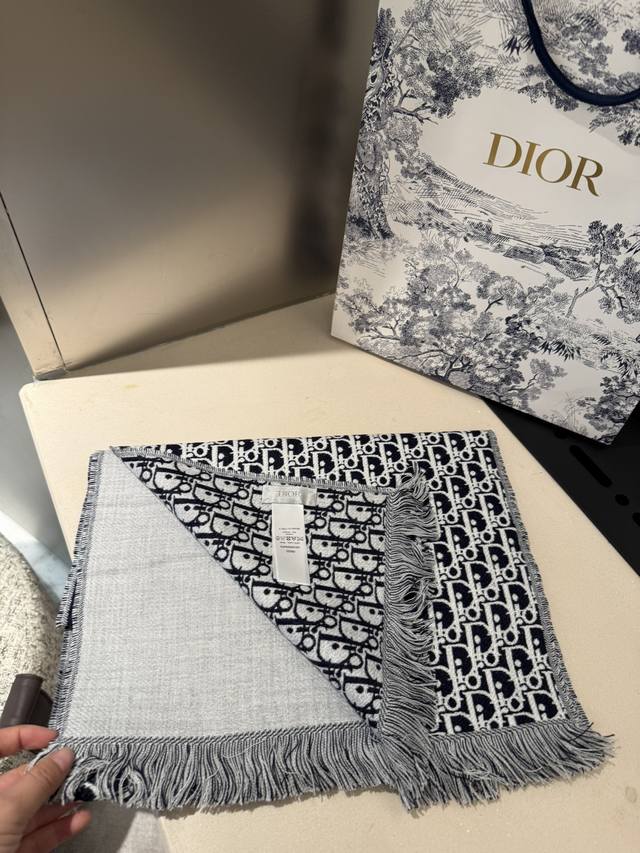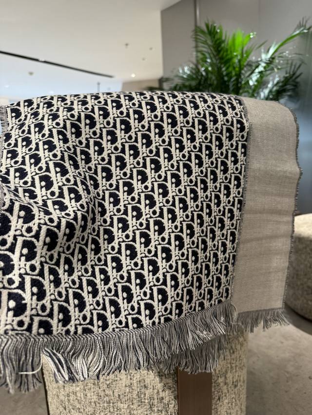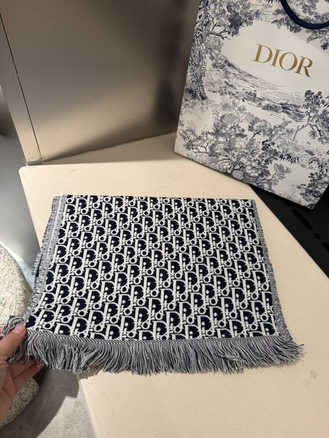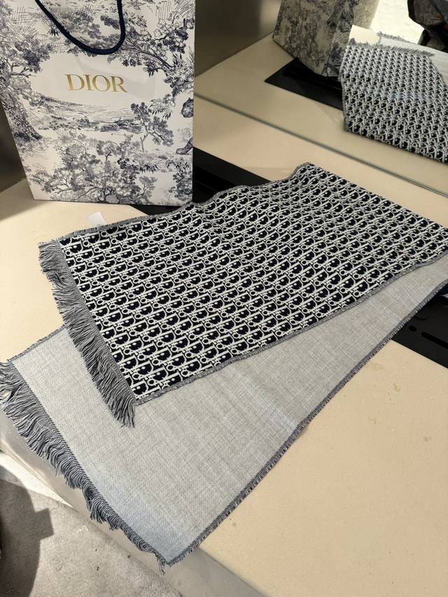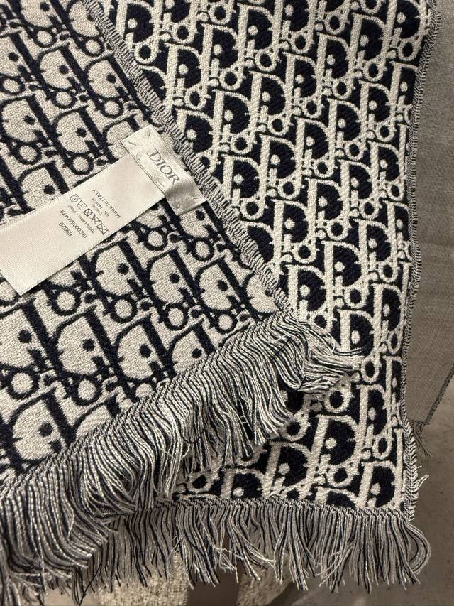 Dior's latest scarf, unisex, retails for 4500 RMB, a must-buy! Looks great on women too, a super gentle and stylish double-sided design for both men and women!! This design feels younger, gentler, and more elegant than previous ones!! It feels like it can be paired with a thousand different tops. The double-sided design features a contrasting jacquard pattern, a truly everyday fashionable style. The 33x200cm size is incredibly versatile and allows for countless tying methods!! Super slimming, sophisticated, and stylish, mainly due to the excellent design and high-quality feel. The moderate thickness makes it very flattering! It's a highly versatile scarf. 100% wool, size 33x200cm.