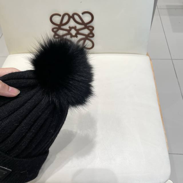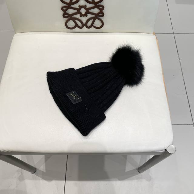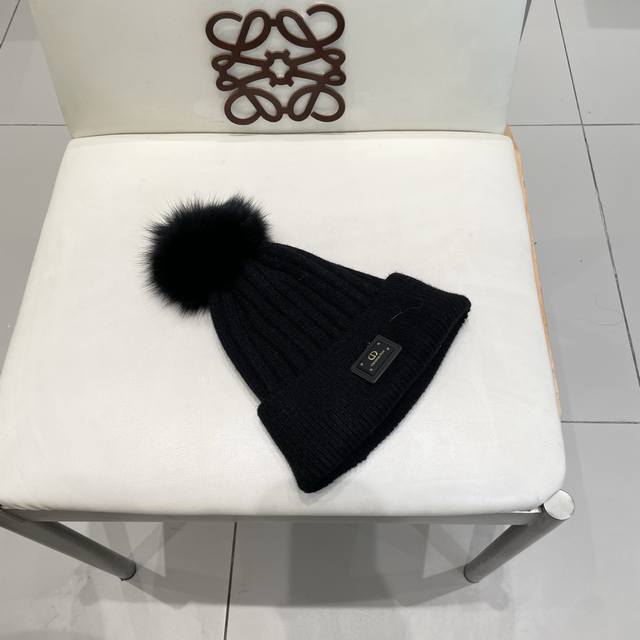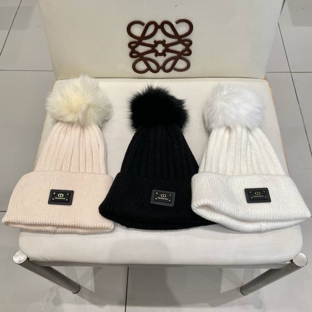 Dior's new autumn and winter knitted wool hat with fox fur ball, super popular and first-class texture, easy to match when going out! Age-reducing artifact
