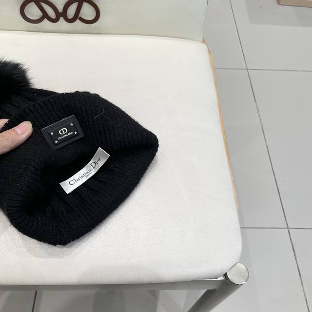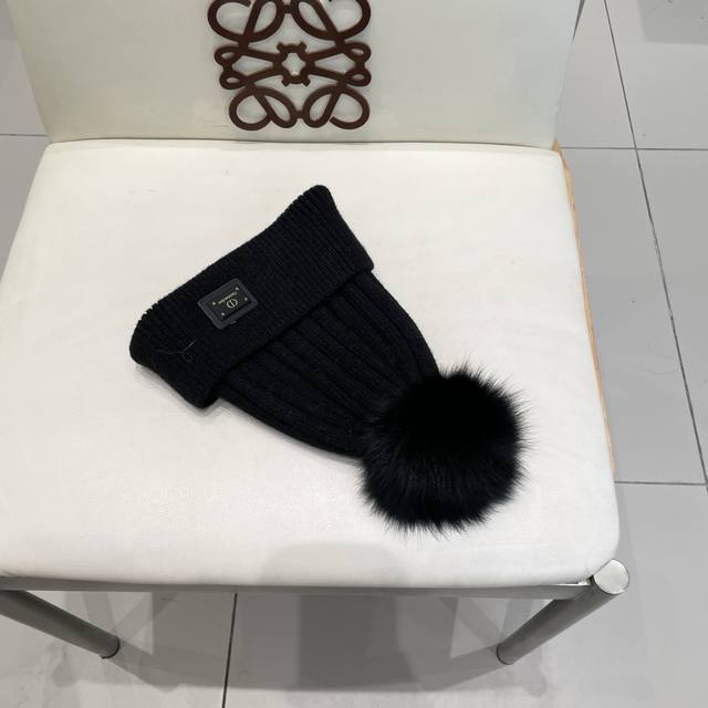 Dior's new autumn and winter knitted wool hat with fox fur ball, super popular a