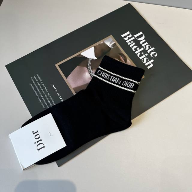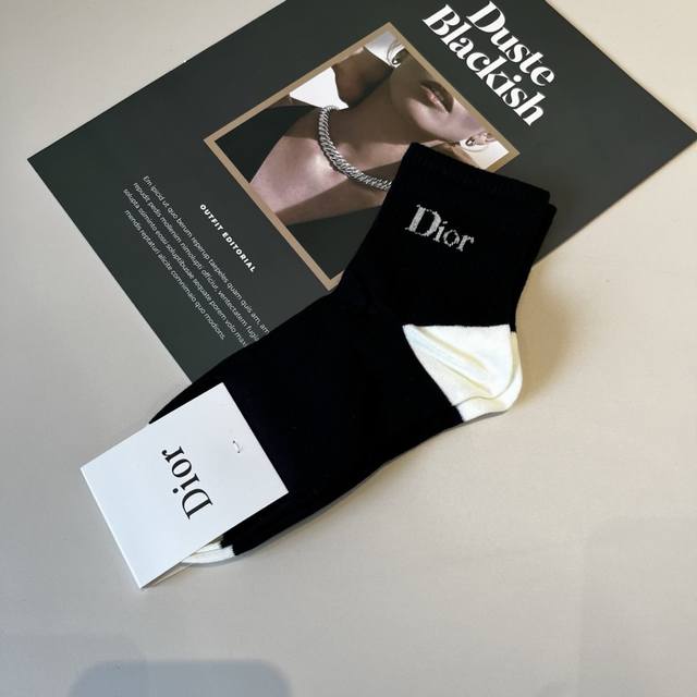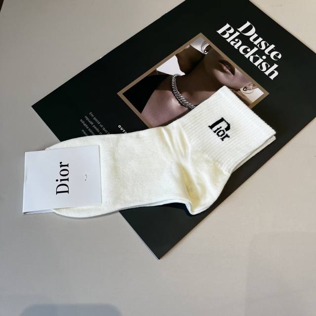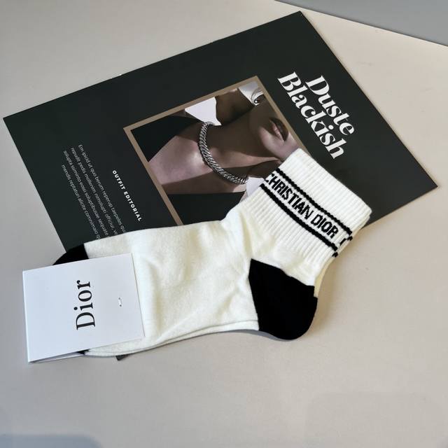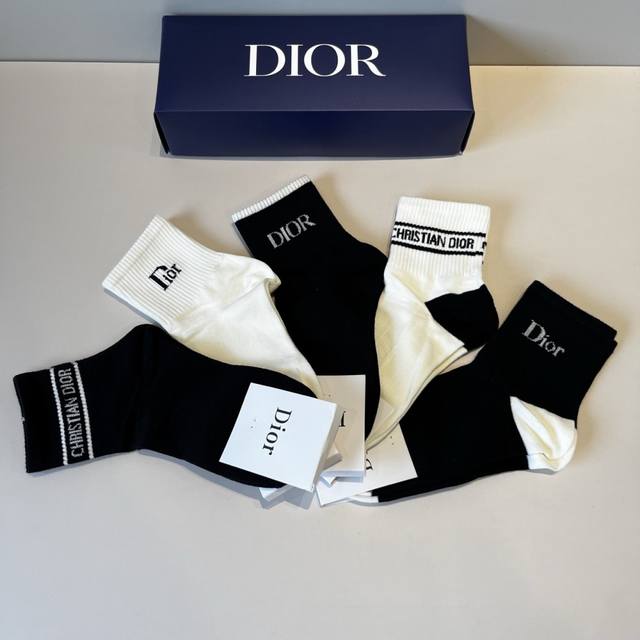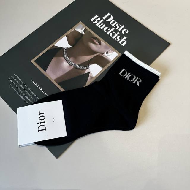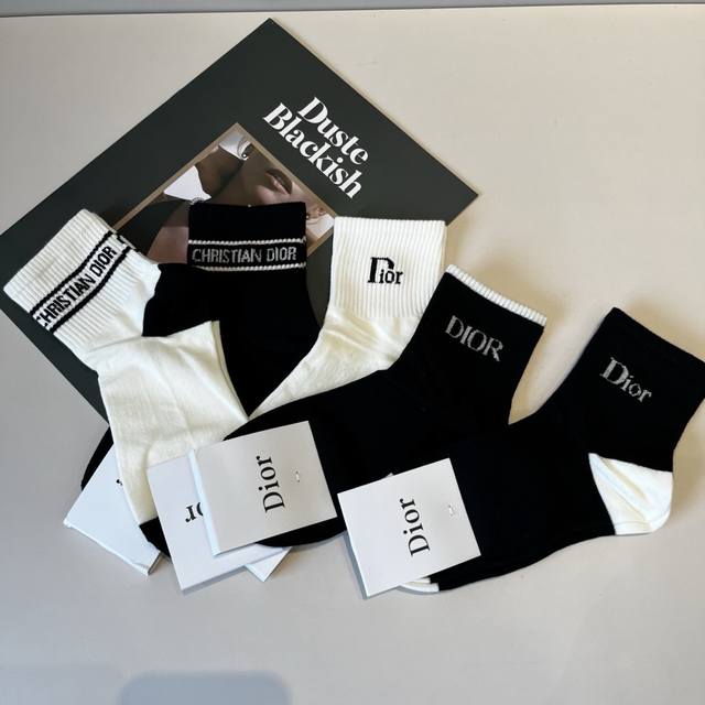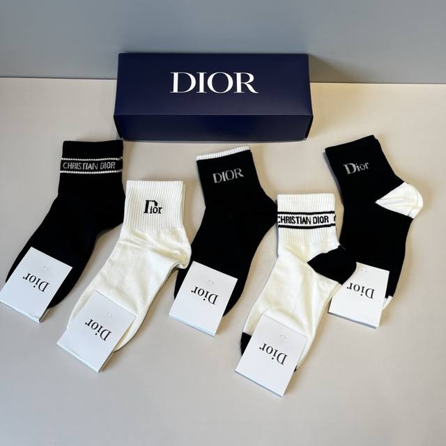 Dior's new early autumn mid-length socks, classic style, fashionable and advanced! Big brand out, must-have for fashionistas, versatile colors, 5 pairs per box