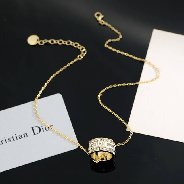 Dior's new Jadior necklace, beloved by top brands, features strong metal lines with a neutral, street-punk feel. The retro metallic texture and Dior monogram are trendy and steal the show, perfectly suited for modern street style and vacation wear, making it a hot summer trendy item... Necklace