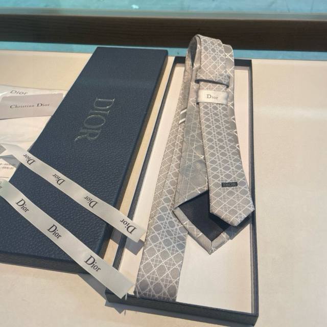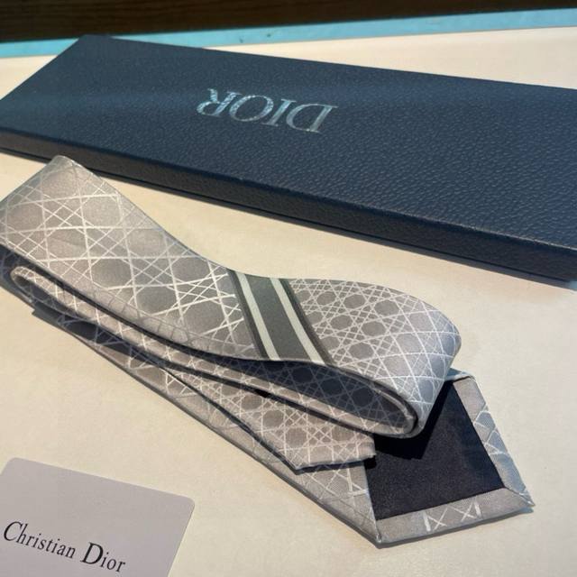 Dior's new men's silk check tie. A rare choice showcasing exquisite craftsmanship and fashionable elegance. This tie features Dior's classic and iconic check pattern, presented in a tonal palette for a more refined style, allowing men to fully express their personality. DDD