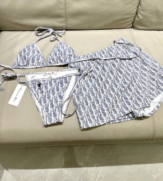 Dior's new three-piece bikini swimsuit set, fashionable and trendy, suitable for various occasions. Perfect for the beach, swimming pool, hot springs, water parks, and rafting. Can also be worn as an inner layer. The one-piece design is flattering and slimming, even if you have a little tummy, it won't affect your beauty. The back design shows off your beautiful back. Fabric: Breathable, comfortable, quick-drying, and elastic. The swimsuit is more skin-friendly and easy to wash. Sizes: S, M, L, XL.