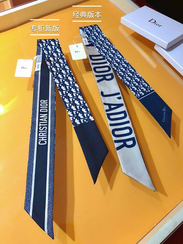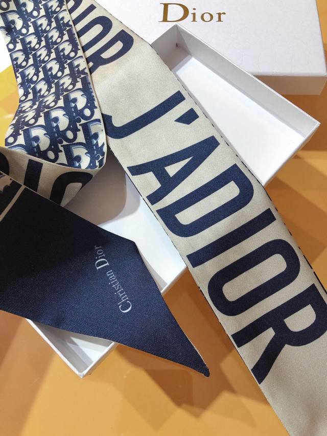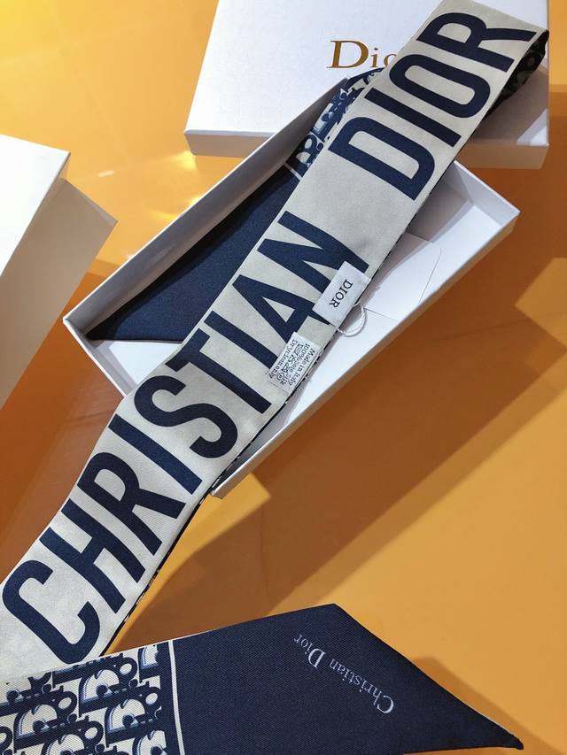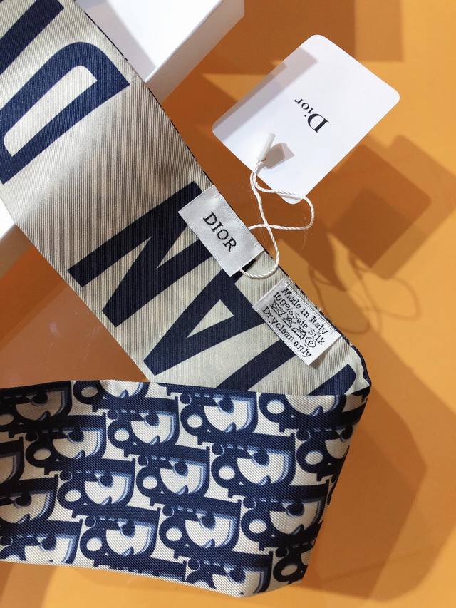 Do2310 Dual Version Update! The super popular Dior Toile Oblique ribbon! The front features a waterfall of Dior monogram lettering and the brand logo, while the back simply displays the brand name on a solid color background, creating a striking contrast! It creates a unique yet familiar look. The effect when worn is amazing! It's so perfect with anything! The ribbon has many uses: scarf, headband, bag accessory, belt... and more. It's incredibly versatile, perfect for summer outfits and winter bags. Made of top-quality silk with a super strong sheen, it's exquisitely beautiful. This is a must-have! 6X105Cm, 100% silk, double-layered, double-sided.