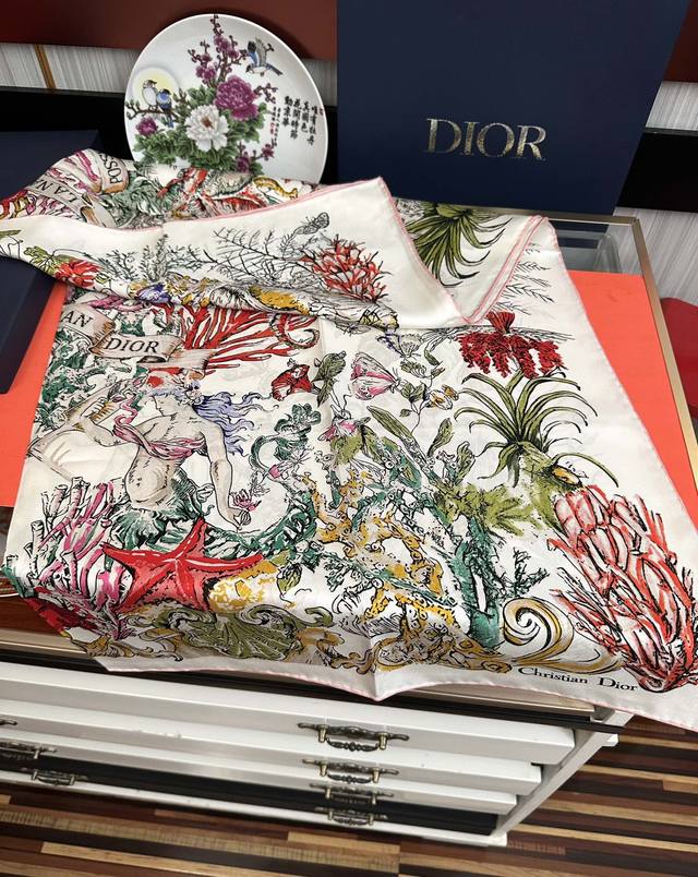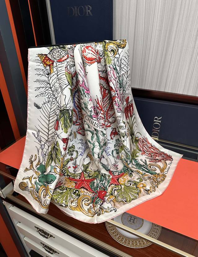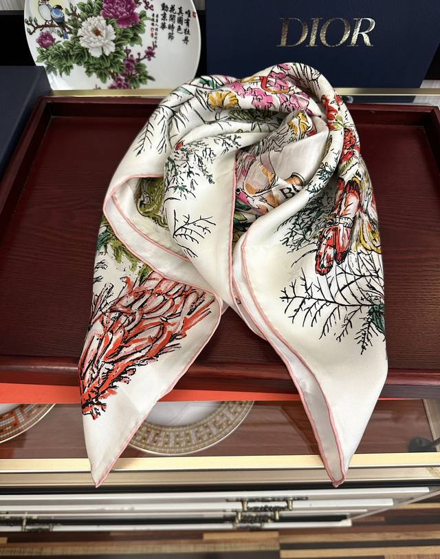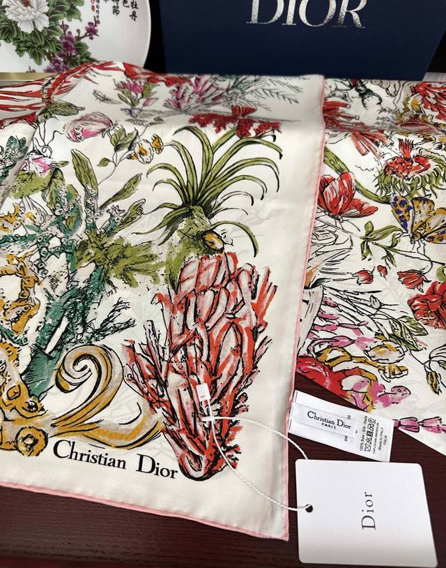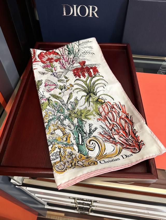 High-quality Dior 2025 new official website synchronized floral series, it's so beautiful! Everyone who bought it raves about it, you have to act fast! High-end, absolutely gorgeous, a true feminine beauty, extremely rare, suitable for all seasons, truly beautiful and incredibly tempting. The effect when worn is simply stunning, the quality is perfect, the whole scarf gives you an aura while being very delicate and elegant. Definitely worth buying! The moment you receive the actual product, you'll be glad you made the right choice. Material: Silk, Size: 90X90