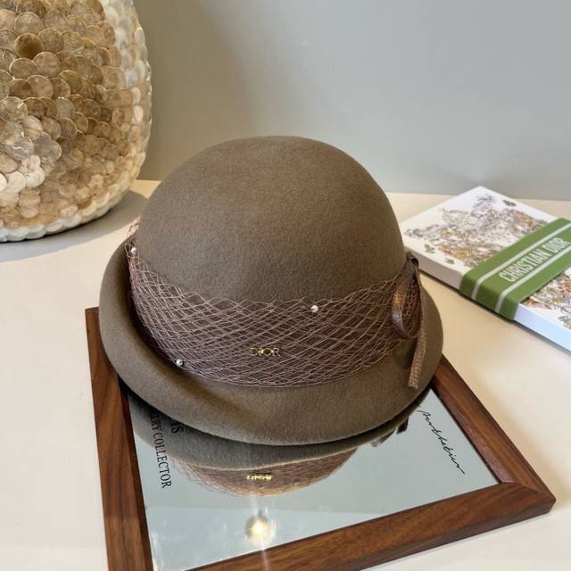 Khaki Dior new wool hat, beret, super goddess style, high-end custom hat, 100%