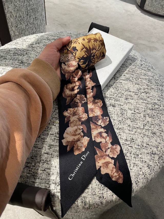Latest boutique style! Dior hair tie with ribbon! Can be used as a small scarf, to tie your hair, to attach a handbag, or as a wrist accessory! Multifunctional and versatile! Double-sided twill silk! Size 6*120