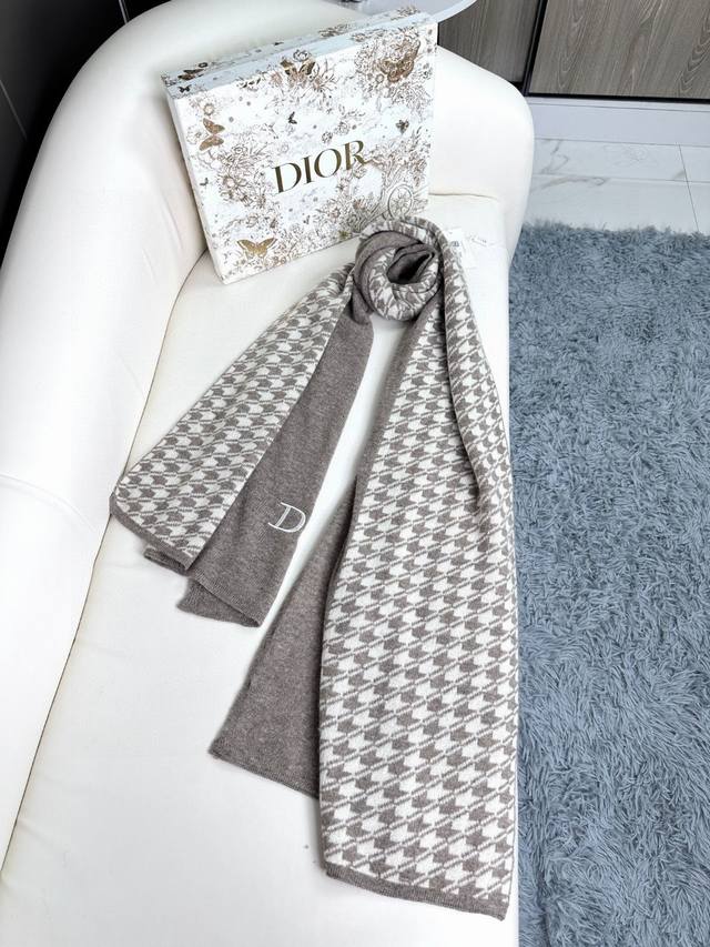 New Arrival! Dior's hottest scarf of 2025! Cashmere knit scarf, Dior limited edition, a must-have!!! No proxy buying required! Limited edition houndstooth pattern with three variations