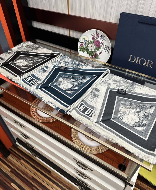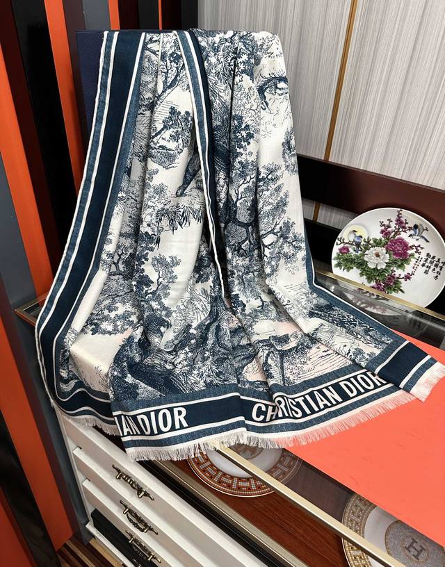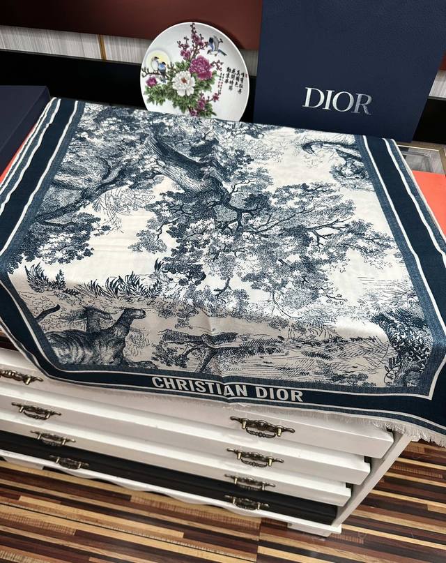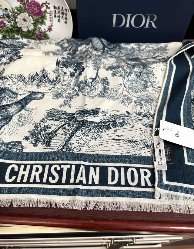 New Dior 2610 reversible tonal animal jungle scarf is so beautiful! You have to grab it quickly! [lips emoji] It can be worn in all seasons and is truly gorgeous. The effect when worn is simply stunning. The quality is perfect. The scarf gives you an aura while being very delicate and beautiful. It's definitely worth buying. The real thing will make you glad you're a woman. Absolutely gorgeous. Size: 65X185, Material: Cashmere.