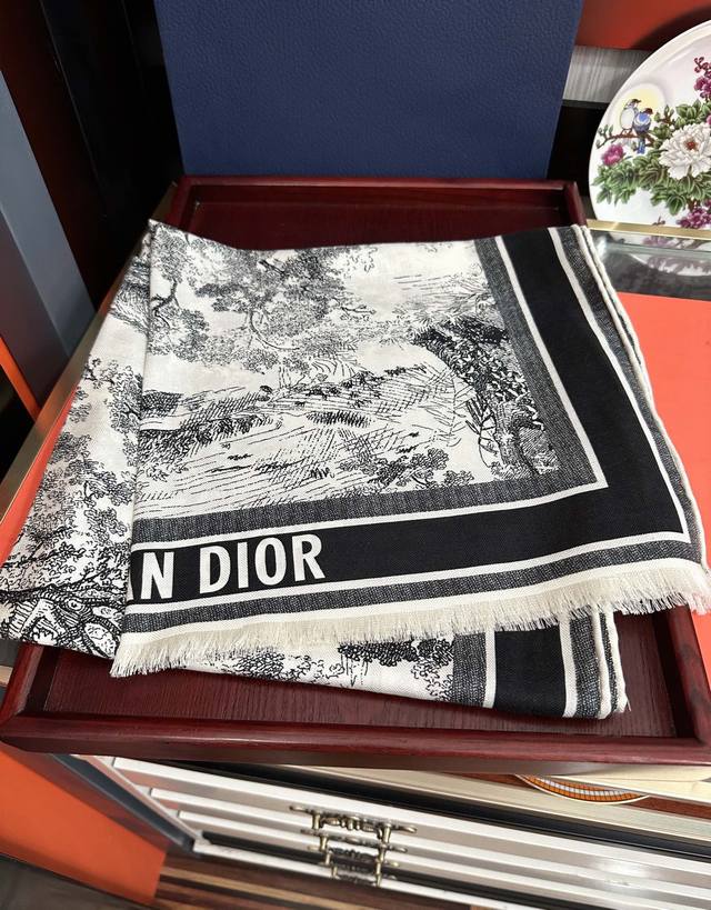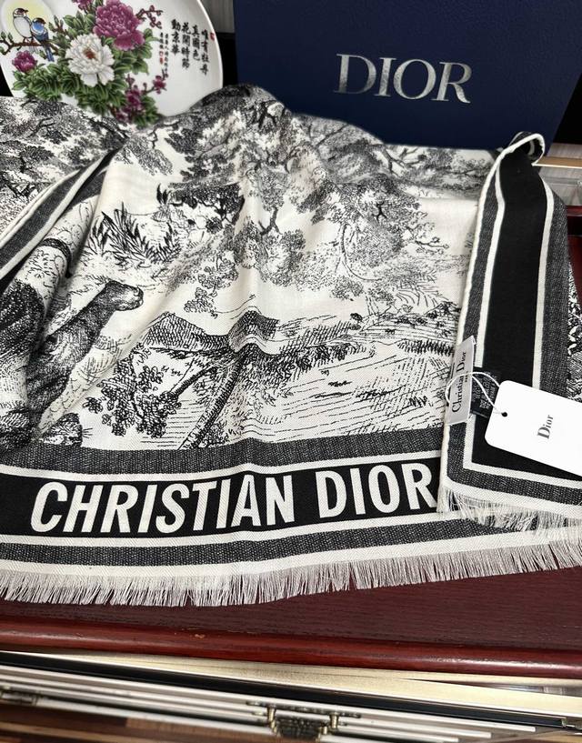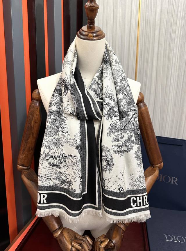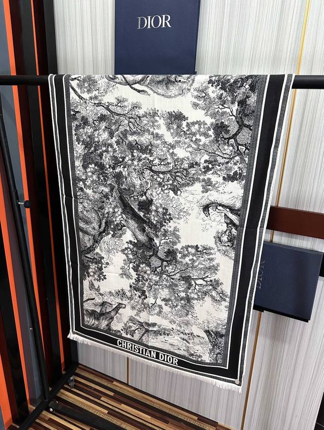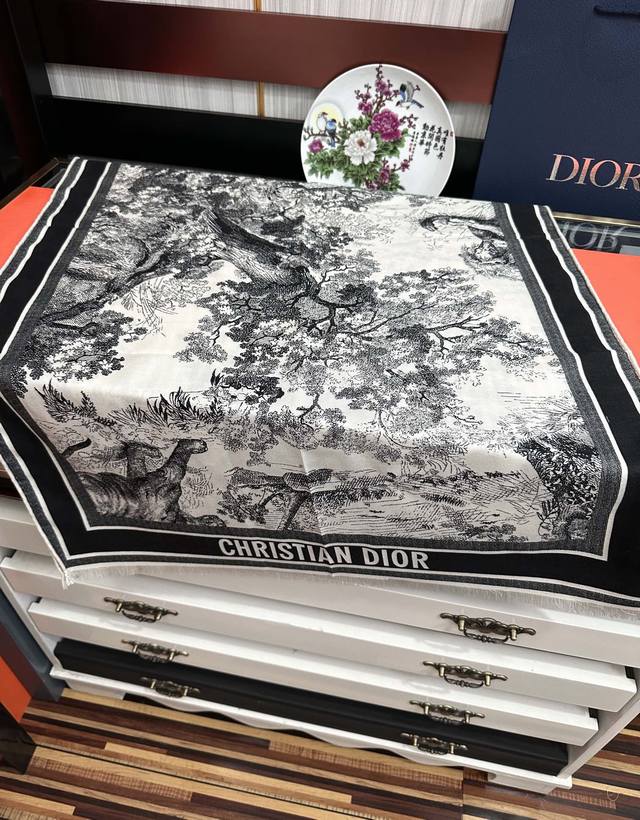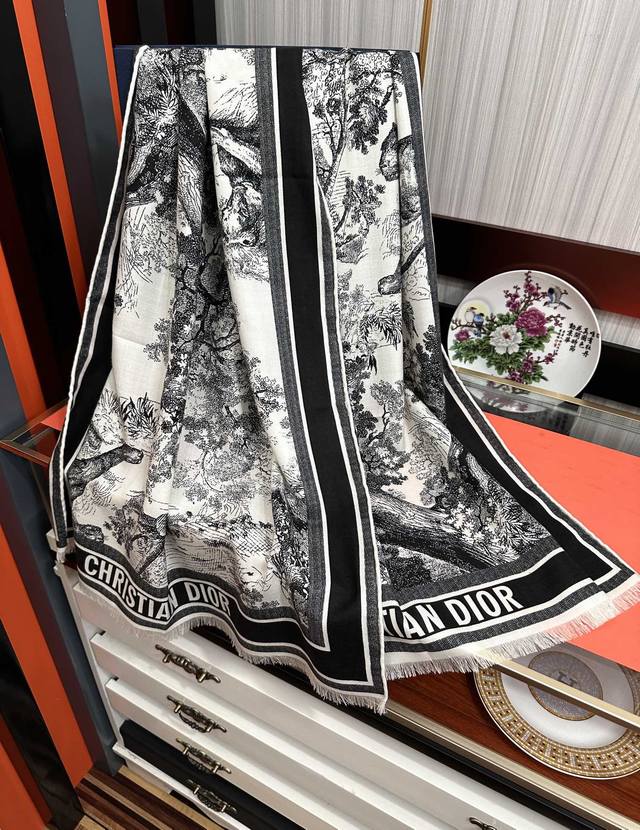 New Dior 2610 reversible tonal animal jungle scarf is so beautiful! You have to grab it quickly! [lips emoji] It can be worn in all seasons and is truly gorgeous. The effect when worn is simply stunning. The quality is perfect. The scarf gives you an aura while being very delicate and beautiful. It's definitely worth buying. The real thing will make you glad you're a woman. Absolutely gorgeous. Size: 65X185, Material: Cashmere.