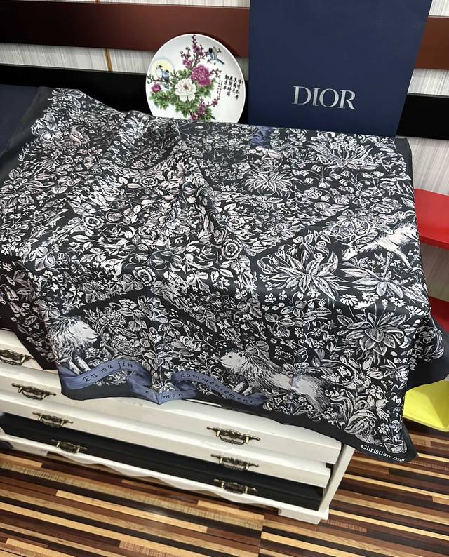 New Dior floral collection, synchronized with the official website, so beautiful! 2025 Spring/Summer new arrivals, absolutely gorgeous! Everyone who bought it raves about it, grab it now! High-end, a must-have for women, extremely rare, suitable for all seasons. Truly beautiful and incredibly captivating. The effect when worn is simply stunning! The quality is perfect. This scarf gives off an aura of sophistication while being exquisitely elegant. Definitely a must-buy! You'll be glad you made the right choice as soon as you receive the actual product. Material: Silk, Size: 90X90, 3 colors available.