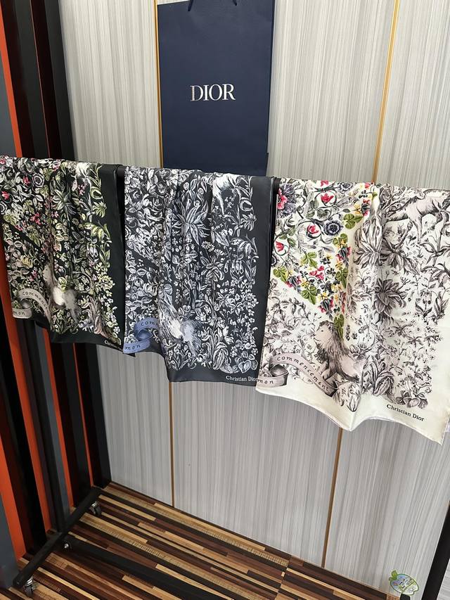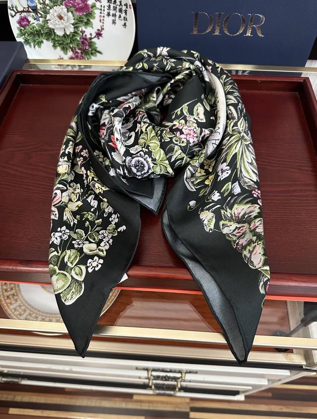 New Dior official website synchronized floral series, so beautiful! 2025 Spring/Summer new arrival, so gorgeous! Everyone who bought it raves about it, you have to act fast! High-end, a must-have for women, extremely rare, suitable for all seasons, truly beautiful and incredibly captivating. The effect when worn is simply stunning, the quality is perfect. This scarf gives you an aura while being very delicate and elegant. Definitely a new arrival worth buying! You'll be glad you made the right choice as soon as you receive the actual product. Material: Silk, Size: 90X90, 3 colors available.
