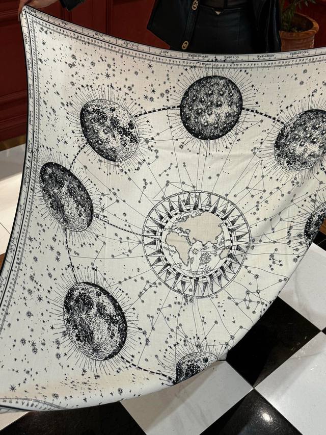 . This print showcases the moon in a constellation-inspired style, inspired by Monsieur Dior's love of astrology.