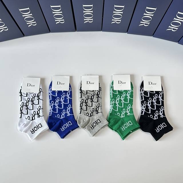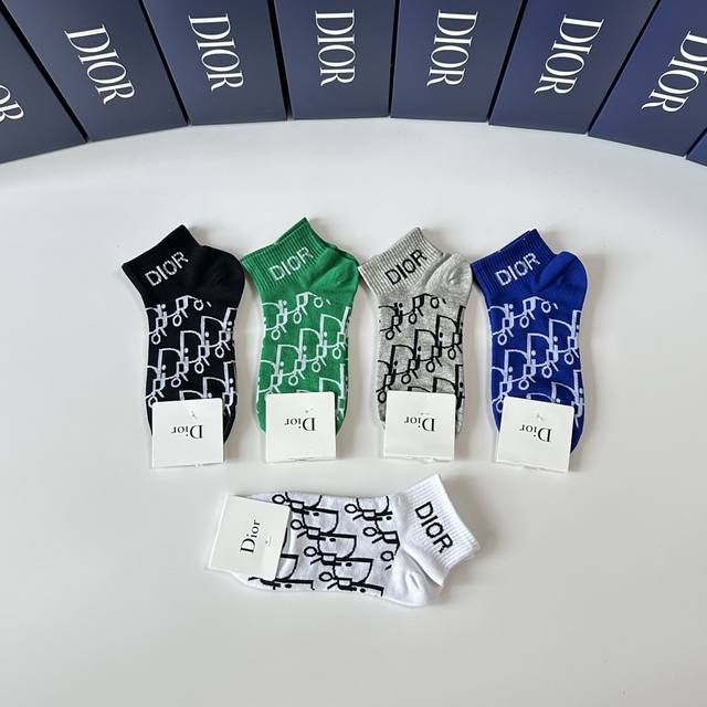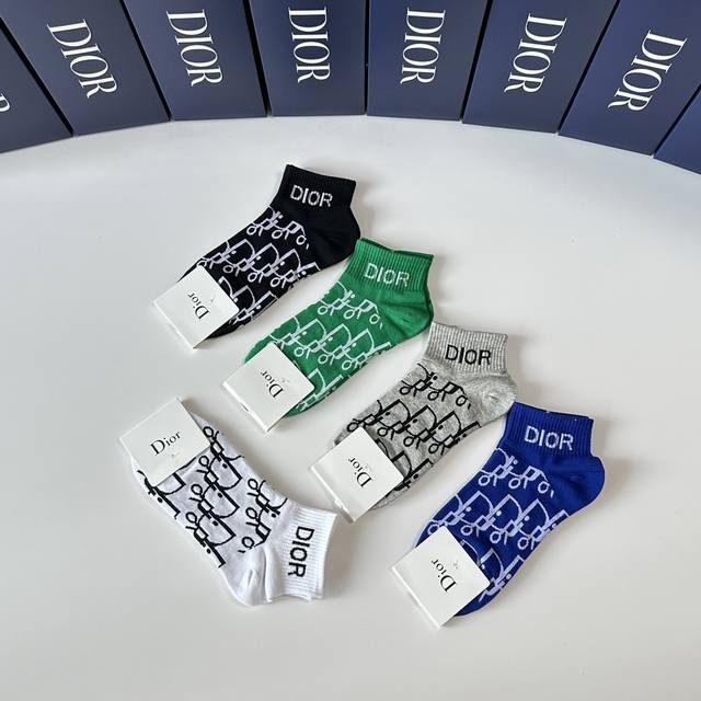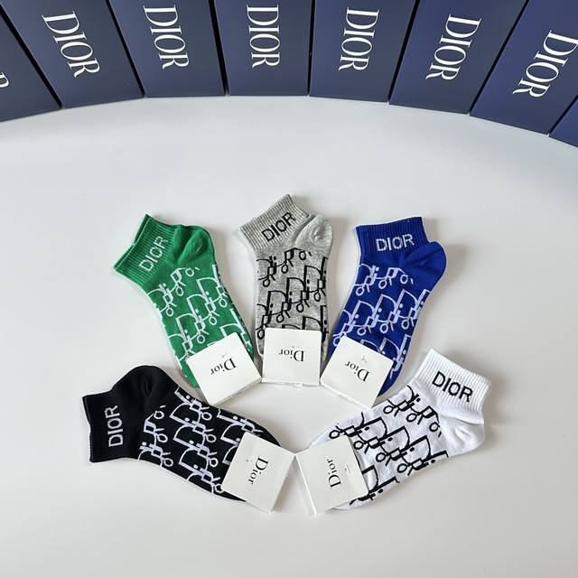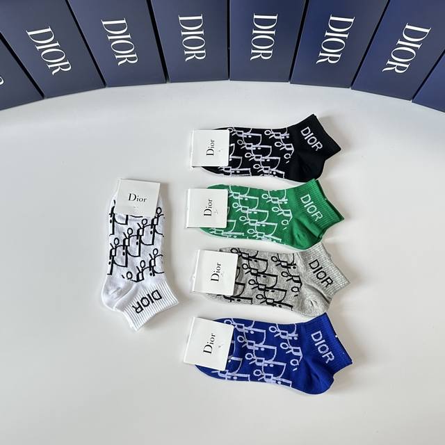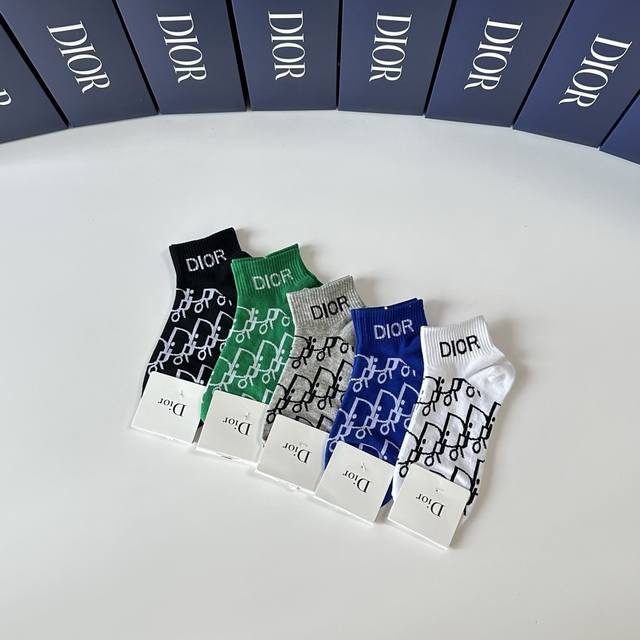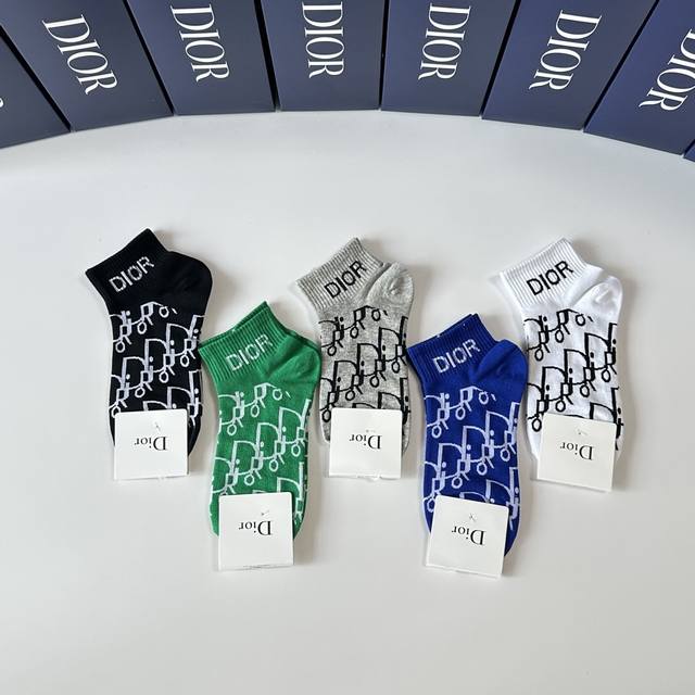 Dior's new mid-short stacked socks! Five pairs per box, counter-synchronized tube socks, big brand out, a must-have for fashionistas, super easy to match