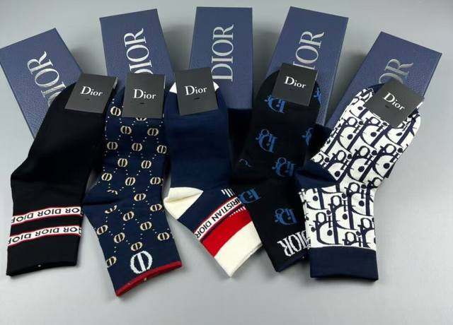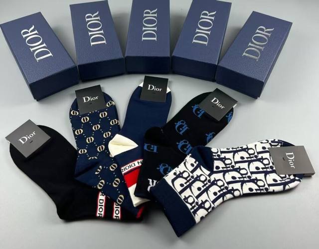 Special Dior men's socks, one box of five pairs of jacquard brand logo, simple and elegant, the actual product is super beautiful, it has been a super popular small single product, big brand out, trendy must-have, super easy to match