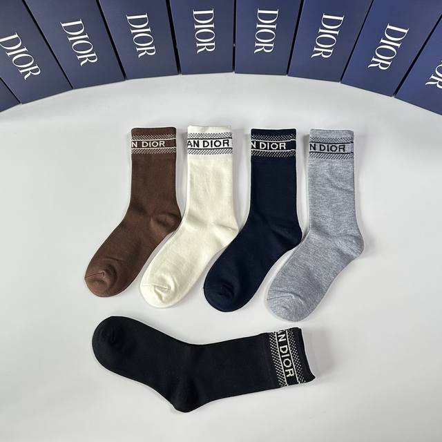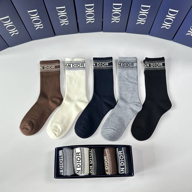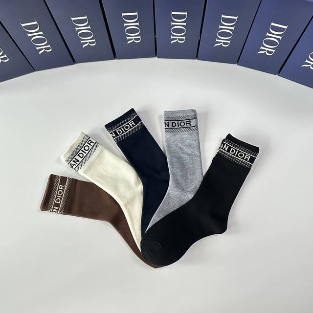 Special packaging from the boutique! Dior's new cashmere mid-length slouch socks! Five pairs per box, same style as boutique socks, a must-have for trendsetters, super easy to match!