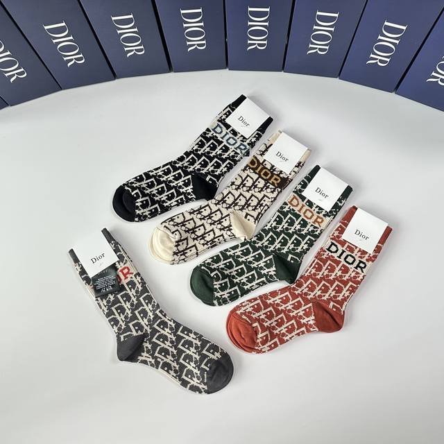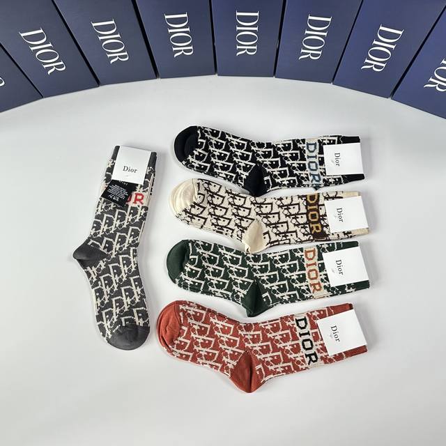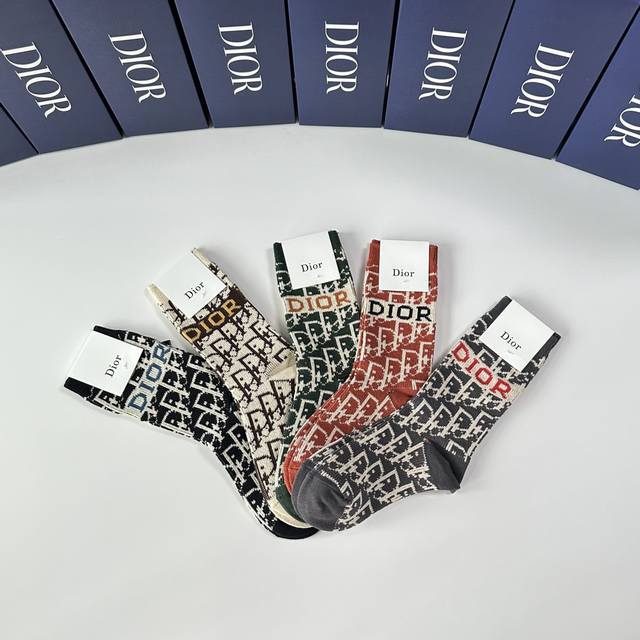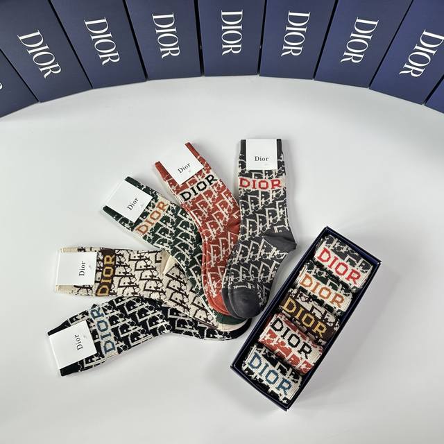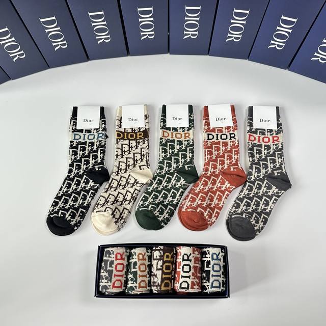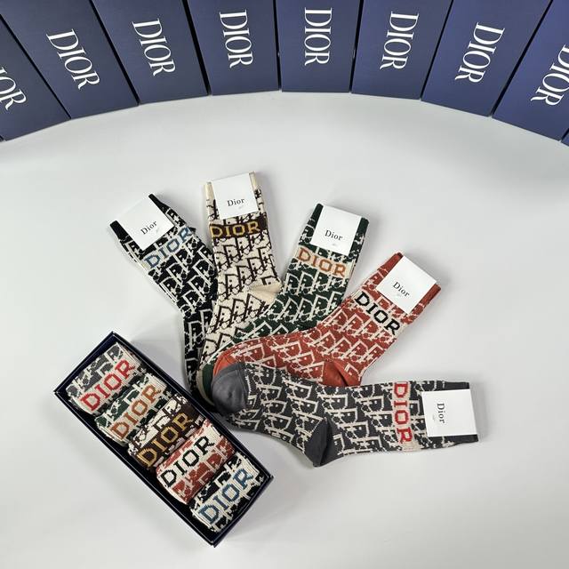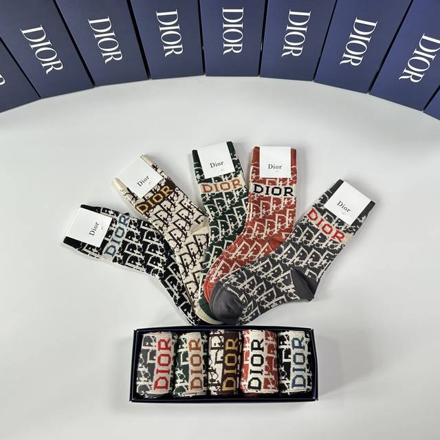 Special packaging from the official store! Dior's new double-needle mid-length slouch socks! Five pairs per box, same style as in official stores, a must-have for fashionistas, super easy to match!