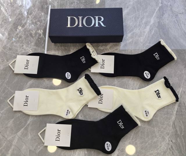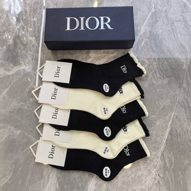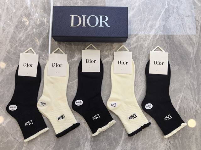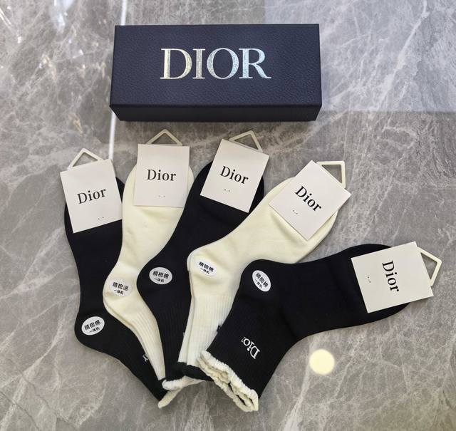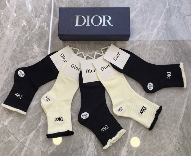 Specially packaged Dior new embroidered mid-length slouch socks! Five pairs per