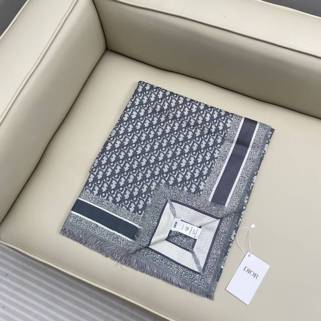 The Dior shawl square scarf features classic monogram prints paired with a silk-wool blend for a luxurious feel, perfect with ready-to-wear and accessories.