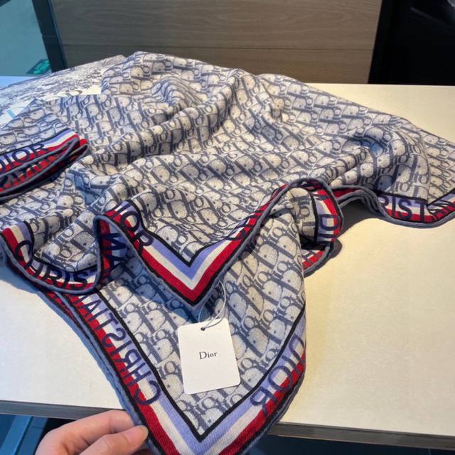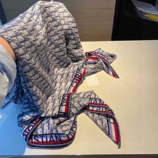 This Dior monogram is absolutely gorgeous, stylish, and versatile!! New Dior monogram herringbone silk cashmere shawl!! It exudes elegance to the core. Its unique style is what makes high-end brands so captivating