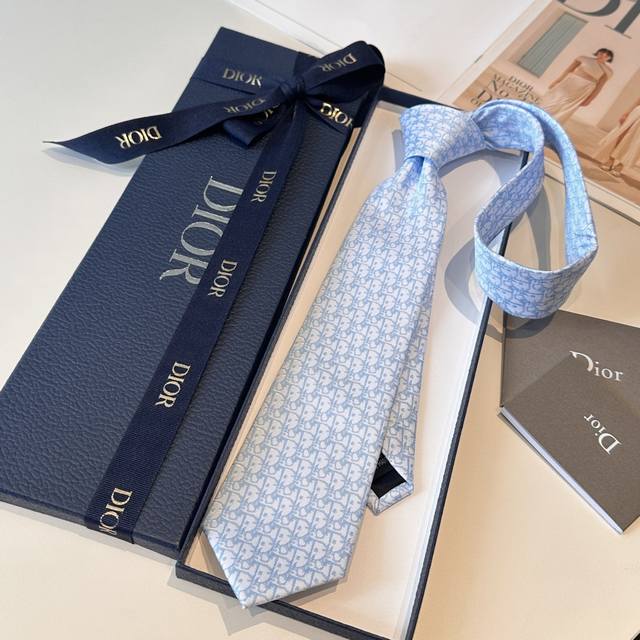 This tie features a striking blue Oblique Pixel print, a fresh interpretation of the classic pattern. Crafted from light blue mulberry silk, it pairs beautifully with various white shirts, adding a touch of modern elegance. Light blue and blue Oblique Pixel print. Dior logo jacquard pattern on the outer edge of the tie. % Mulberry silk.