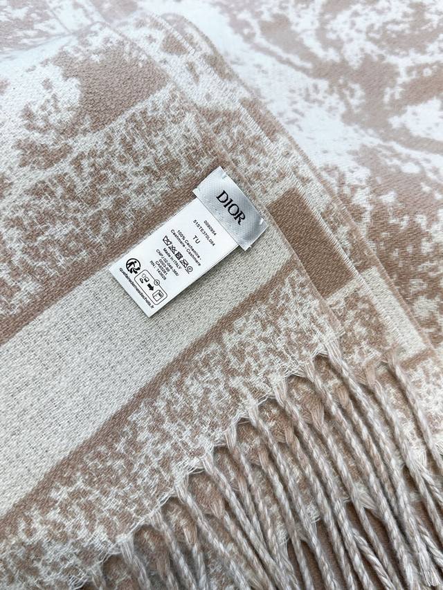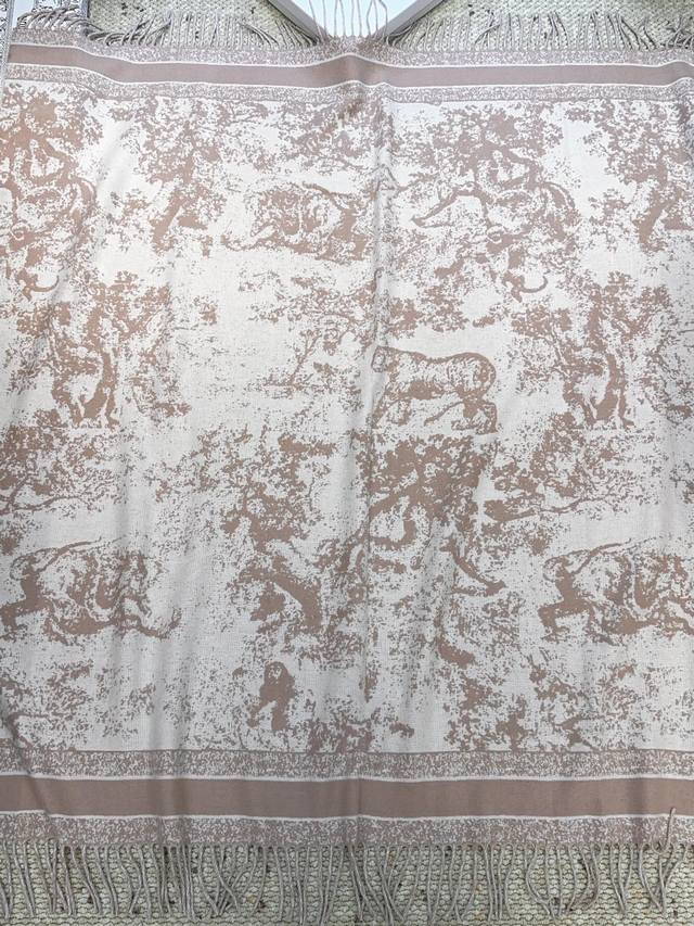 Top-tier Dior animal jacquard logo print large square scarf, shawl, blanket, and three-in-one. This scarf is super large, measuring 140*140cm! It's double-sided woven. Look at the exquisite print! This isn't just a scarf, a small blanket, or a luxury item; it's a work of art worth collecting! Achieving such exquisite prints on a thick scarf requires decades of experience in printing to create such a beautiful effect! It has a low-key, luxurious, courtly feel. Grab this authentic item when you see it! Whether used as a scarf, blanket, or decorative piece, it's the perfect choice! Limited quantity, for discerning customers. This is an absolutely stunning piece! A truly beautiful authentic order. Last year, the export factory received an order that was shipped directly to the US. We've had our eye on this item since the middle of last year, but the factory only released this small batch after a year due to a confidentiality agreement! Although the quantity is limited, we're already satisfied to have received it all. Cashmere is known worldwide as "soft gold," with a soft and delicate feel. Material: Imported cashmere from Kashmir. Size: 140*140cm.