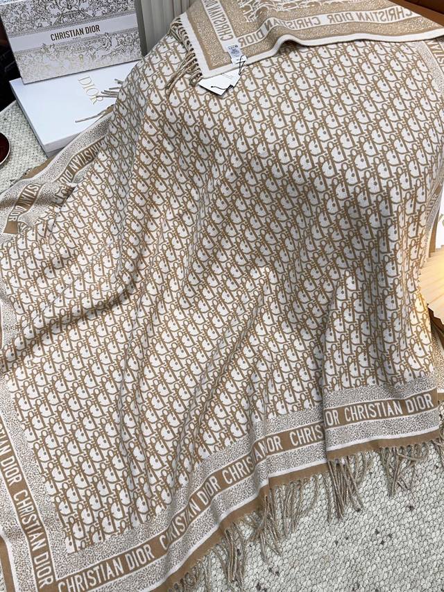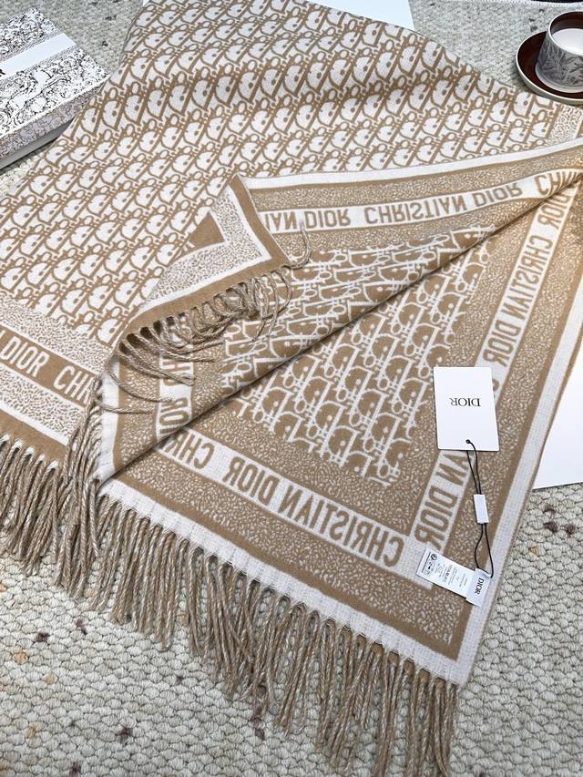 Top-tier Dior Chanel Jacquard Logo Print Large Square Scarf, Shawl, Blanket, and More! This scarf is super large, measuring 140*140cm! It's double-sided woven, and look at the exquisite print! This isn't just a scarf, a small blanket, or a luxury item; it's a work of art worth collecting! Achieving such a refined print on a thick scarf requires decades of experience in printing to create this stunning effect! It has a touch of understated luxury and regal elegance. Grab this authentic piece when you see it! Whether used as a scarf, blanket, or decorative item, it's the perfect choice! Limited quantity, for discerning customers. This is an absolutely stunning piece! A truly beautiful authentic order. Last year, the export factory P received an order that was shipped directly to the US. We've had our eye on this piece since the middle of last year, but due to a confidentiality agreement, factory P only released this small batch after a full year! Although the quantity is limited, we're already satisfied to have received it. Cashmere is known worldwide as "soft gold," and it has a soft and delicate feel. Material: Imported cashmere from Kashmir. Size: 140*140cm.