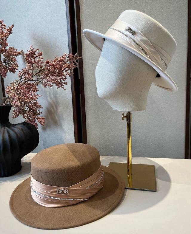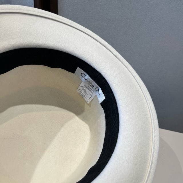 / White Dior new wool hat, flat top hat, 100% wool fabric%, head circumference 57C