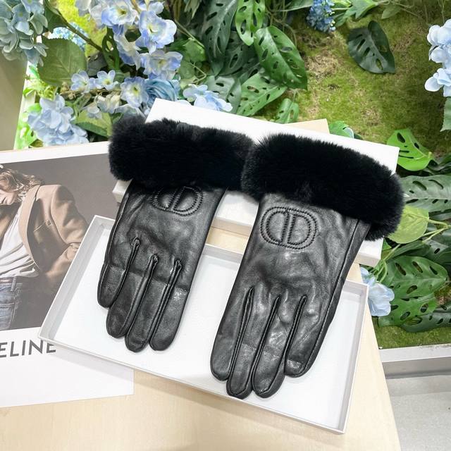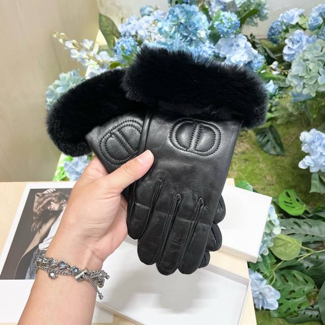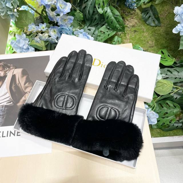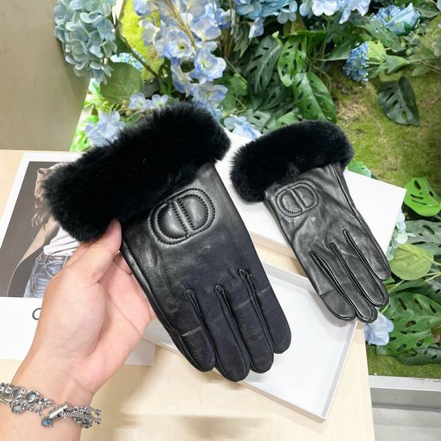 Women's Dior Didr New Autumn/Winter Slippery Rabbit Fur Cd Lambskin Embroidered Gloves for Touchscreen Phones. Worth comparing with similar styles, but of different quality. Outperforms inferior products on the market. Imported first-grade lambskin slippery rabbit fur lining, classic and timeless style. If you like it, you can buy it now. This quality means you can use it this year and next year. Size: One Size DDD
