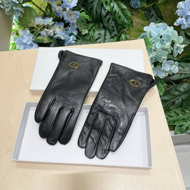 Women's Dior Fall/Winter Lambskin Embroidered Gloves with Touchscreen Phone Display (with packaging). Worth comparing with similar styles of different quality; far superior to inferior products on the market. Imported first-grade lambskin with fleece lining, classic and timeless design. If you like it, buy it now; this quality means you can use it this year and next year. Size: One Size DDD