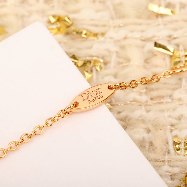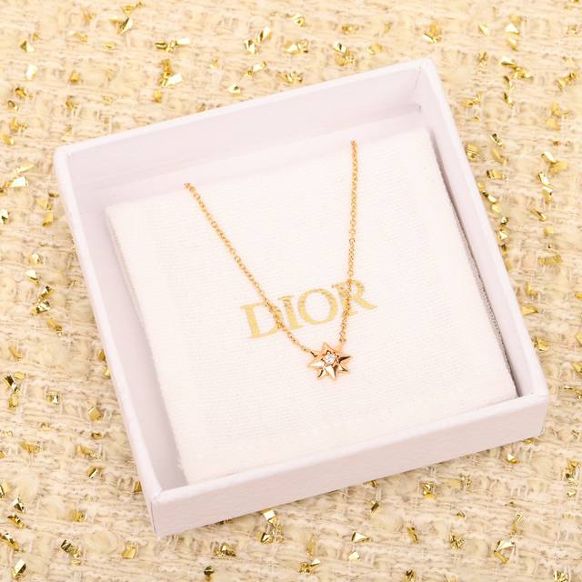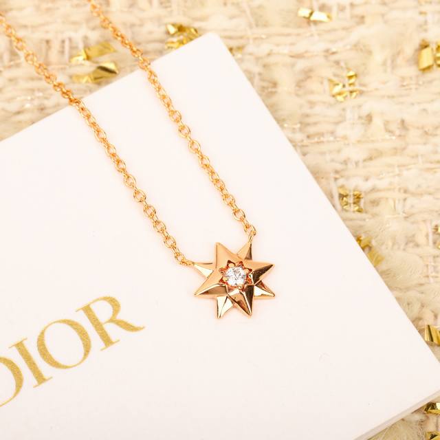 210645 We produce eight-pointed star necklaces, custom-made with genuine gold and diamonds. We only produce genuine gold items that match the original, genuine product. Large quantities are available; inquire for more information. The Rose Des Vents reinterprets the classic compass rose motif, without gemstone embellishments, incorporating Monsieur Dior's symbolic lucky star, opening a refined new chapter for the collection. Adorned with rose gold and precious diamonds, the exquisite design exudes modern charm. It can be paired with other necklaces in the Rose Des Vents collection. Made entirely of 925 silver with thick gold plating for longer color retention.