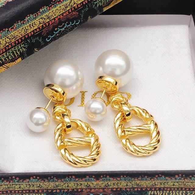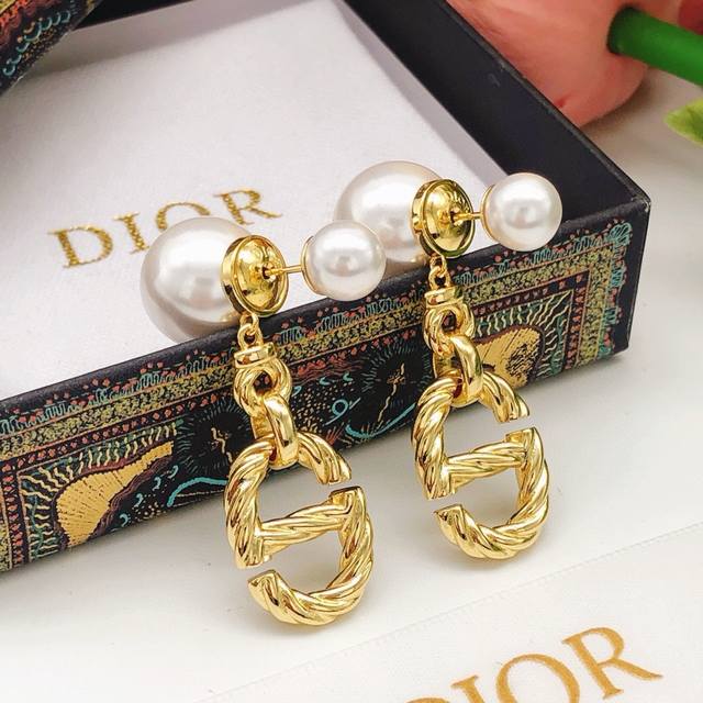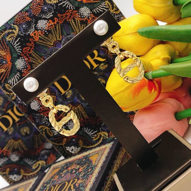Cd Navy Earrings Classic And Minimalist.Crafted With Goldfish-Inspired Metal Detailing, The Twisted Pattern Reinterprets The Cd Initials, Elevating The Design. Create A Fashionable Look.