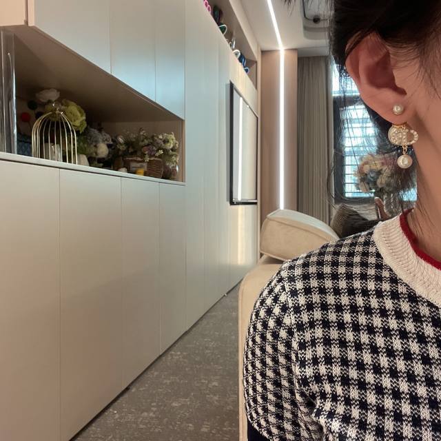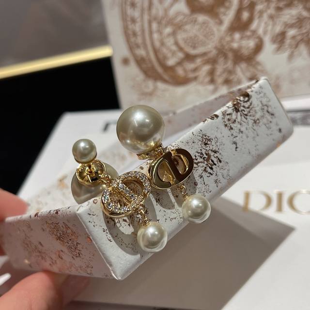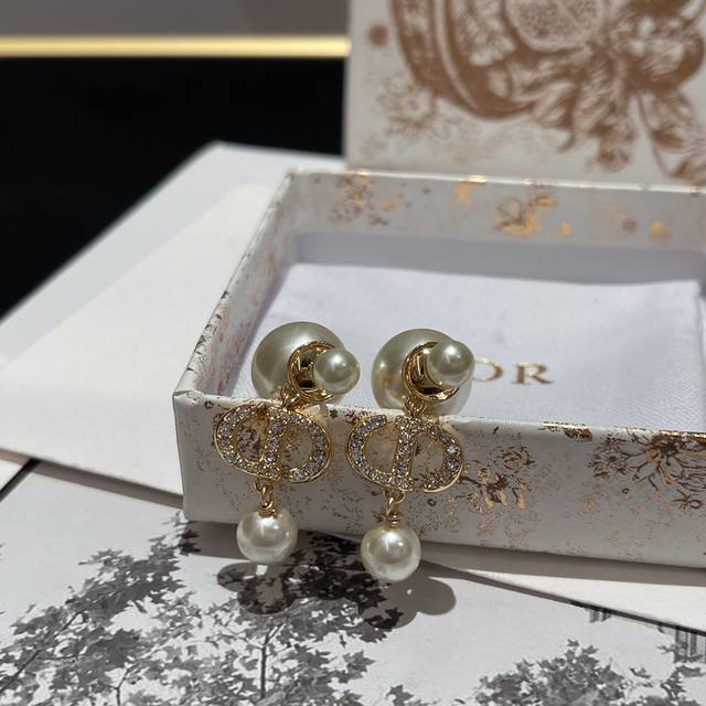 Code Ded0427 Dior Large And Small Pearl Fringe Ear Studs With Diamond-Encrusted Cd Full-Diamond Pendant Pearl Earrings